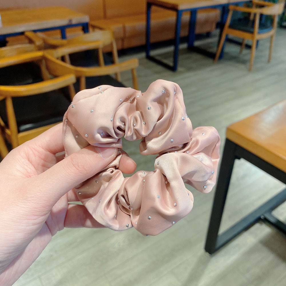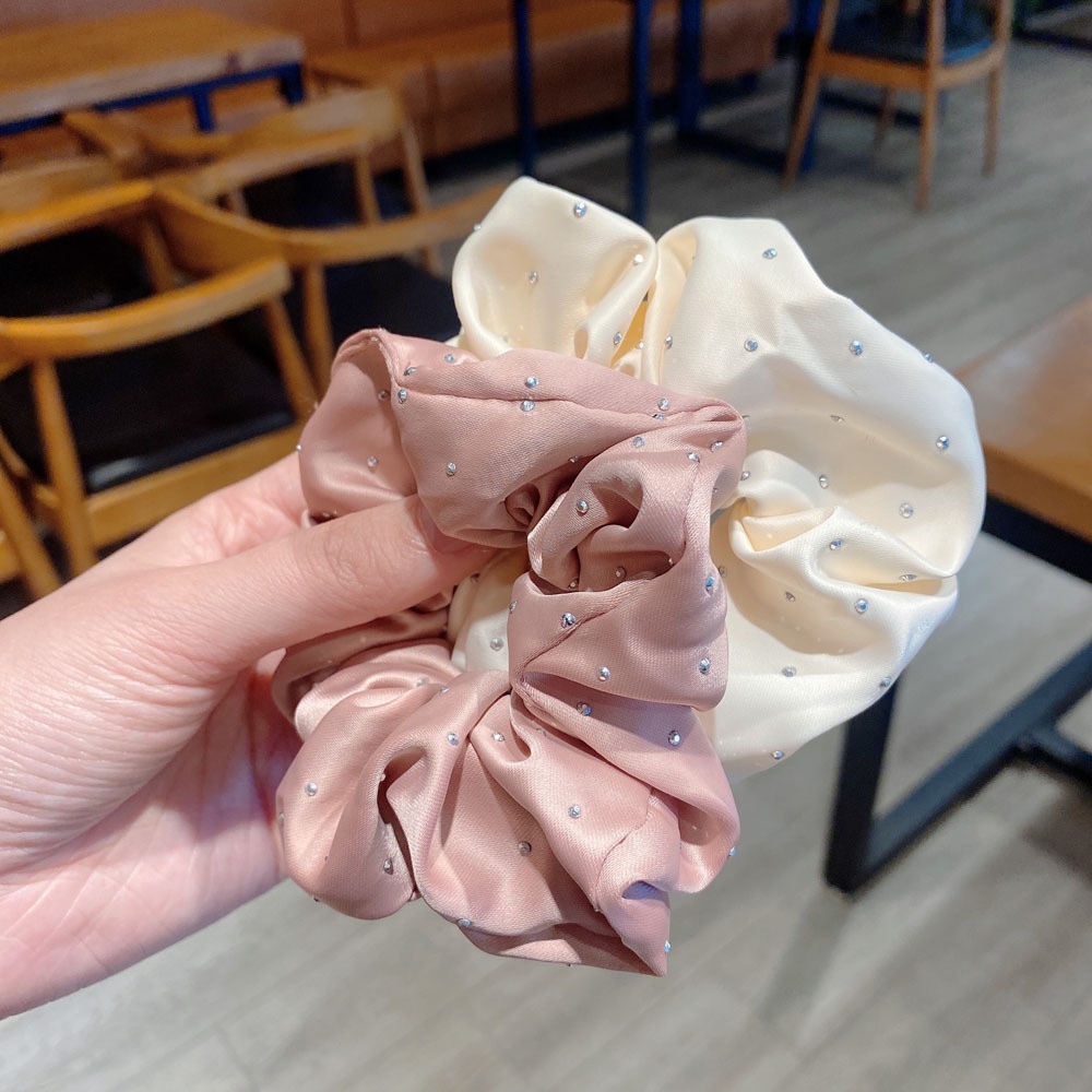 2022 Retroกระพริบเพชรซาติน Scrunchyแหวนผมจีบสีทึบเชือกผมผู้หญิง