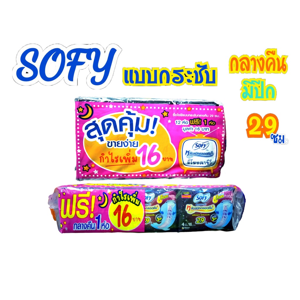 Sofy ผ้าอนามัย โซฟี แบบกระชับ กลางคืน 29ซม. ห่อ4ชิ้น