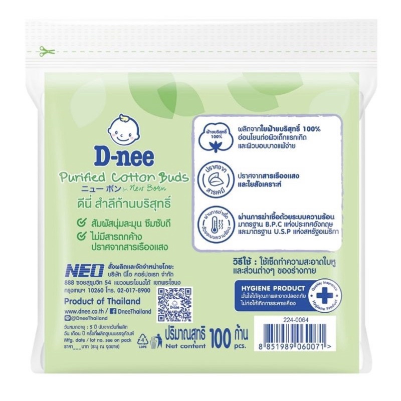 D-Nee ดีนี่ สำลีก้านบริสุทธิ์ ขนาด 100 ก้าน สำลีก้านจิ๋ว สำลีก้าน