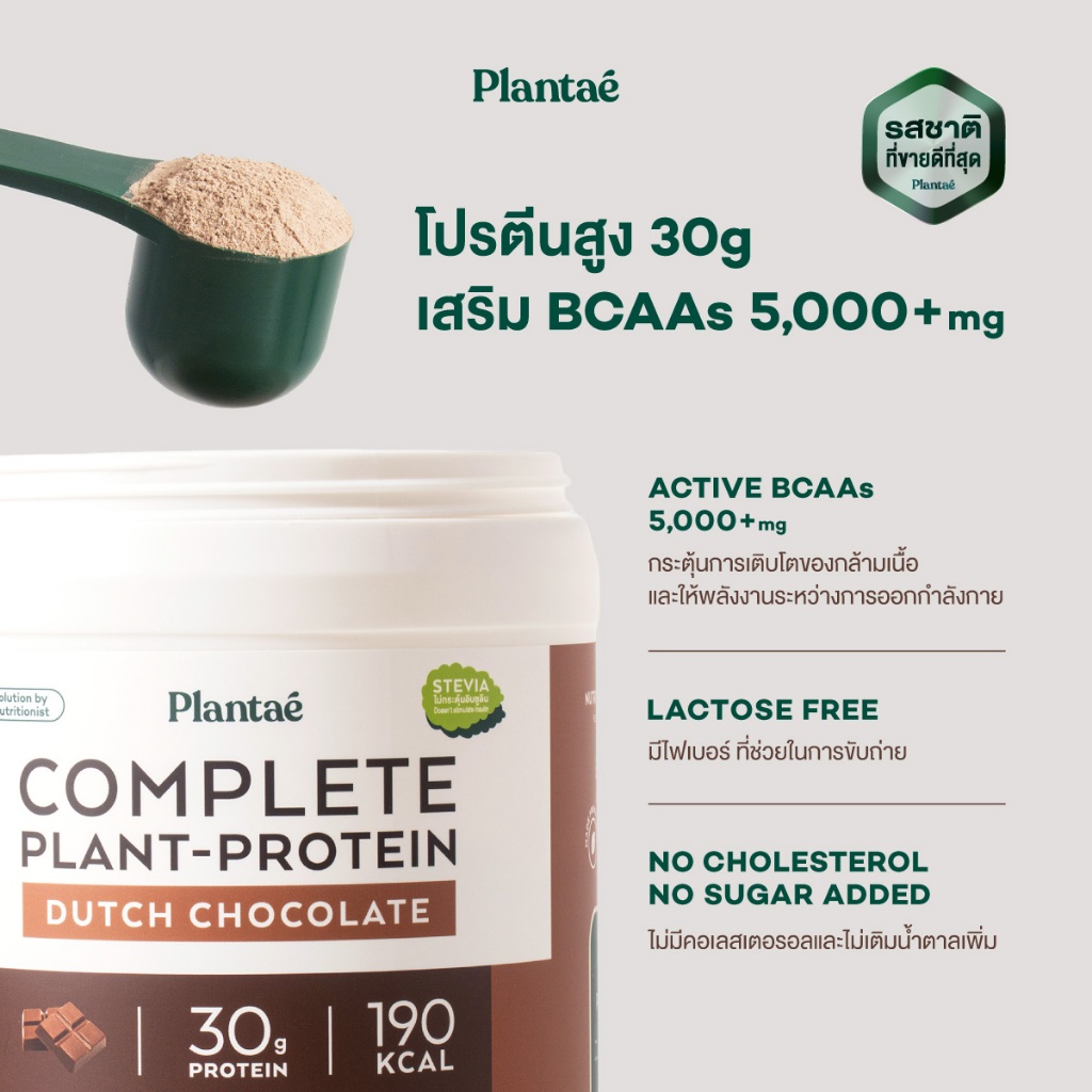 Plantae Complete Plant Protein รส Dutch Chocolate กระปุก 800g โปรตีนจากพืช plant based เพิ่มกล้ามเนื้อ โปรตีนสูง แพลนเต้