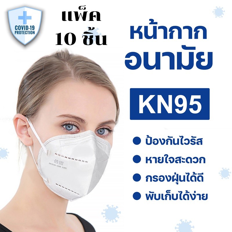 ลดล้างสต๊อก หน้ากากอนามัย N95 (แพ็ค 10 ชิ้น) KN95 Mask มาตรฐาน GB2626-2006 หน้ากากกันฝุ่นPM2.5 เชื้อโรค ไวรัส หน้ากากN95