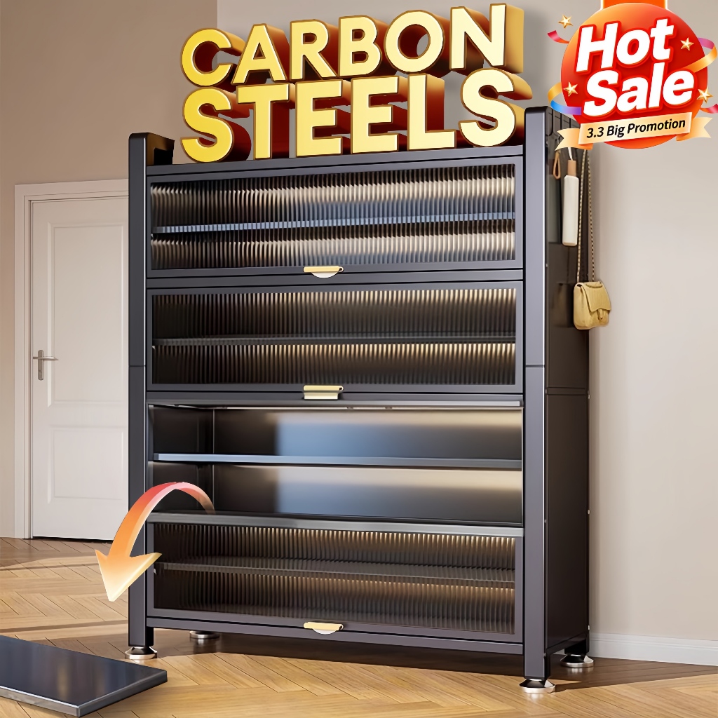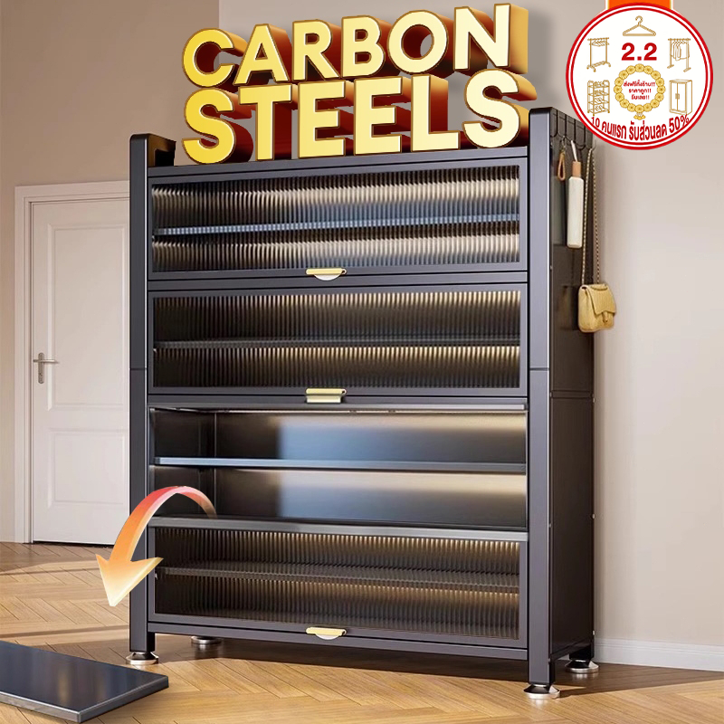 [สีดำ] ตู้เก็บรองเท้า ตู้กับข้าว เก็บของเฟอร์นิเจอร์ มีฝาปิดกันฝุ่นกันหนู ตู้เก็บของในครัว ไม่เป็นสนิม โครงเหล็ก