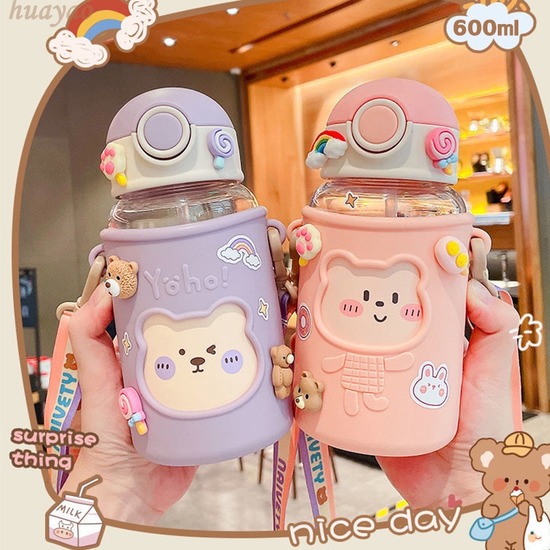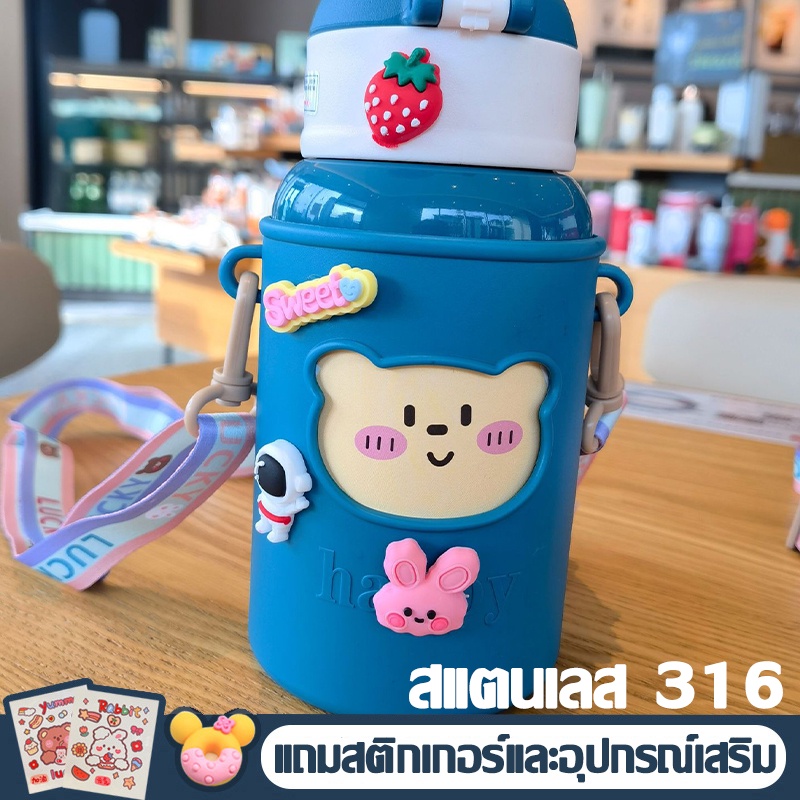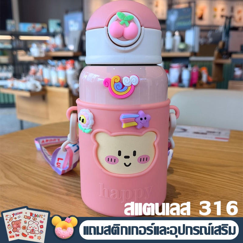 【COD】ขวดน้ำ กระติกน้ำเด็ก แก้วเก็บความเย็น ขวดน้ำเด็กไปโรงเรียน กระบอกน้ำเด็ก ขวดน้ำเด็กอนุบาลแถมฟรีสติ๊กเกอร์ 3D 600ml