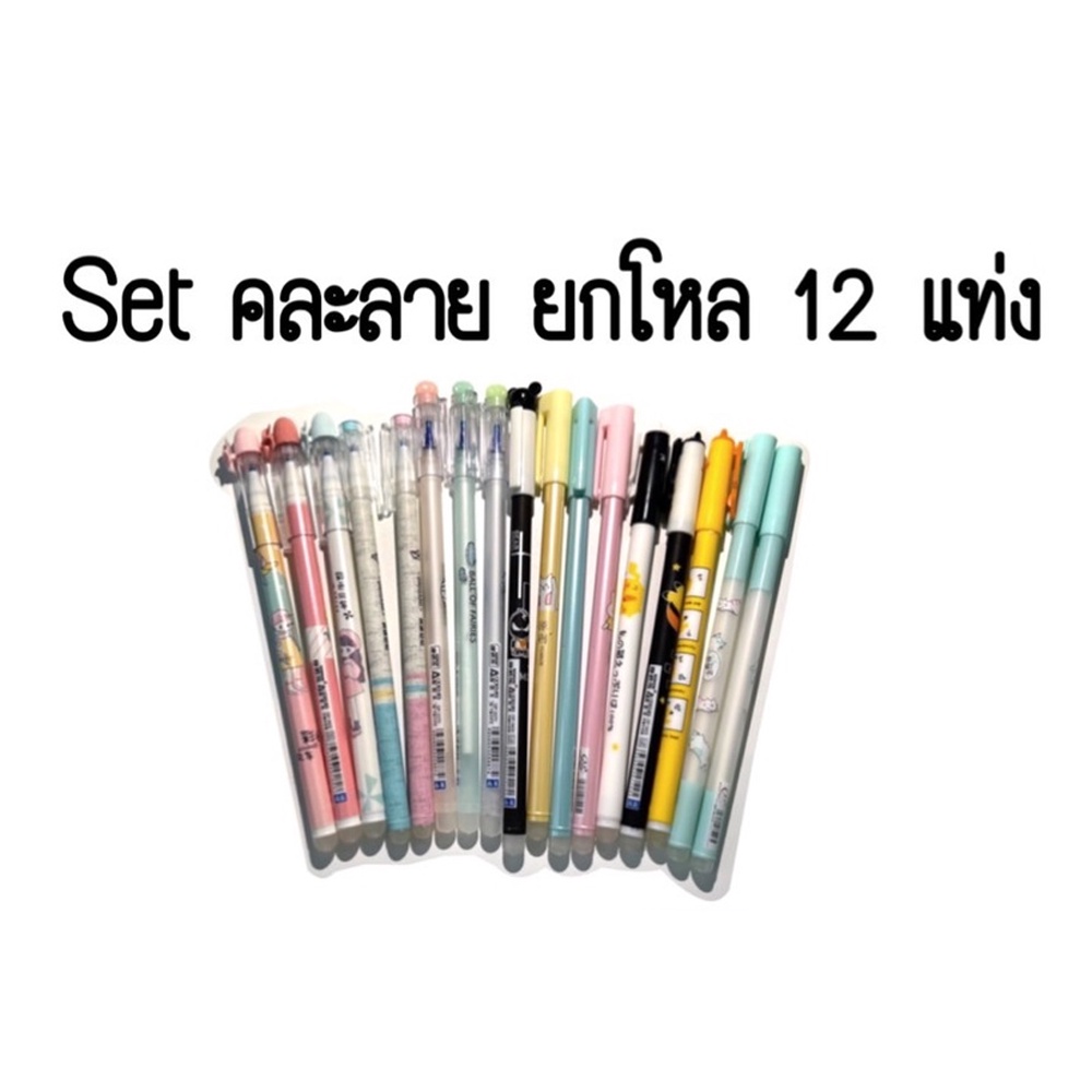 ปากกาเจลลบได้ หมึกสีน้ำเงิน (แพ็คโหล 12 ด้าม แบบคละลาย)