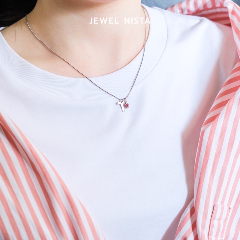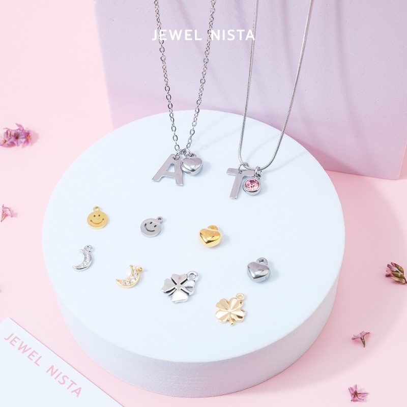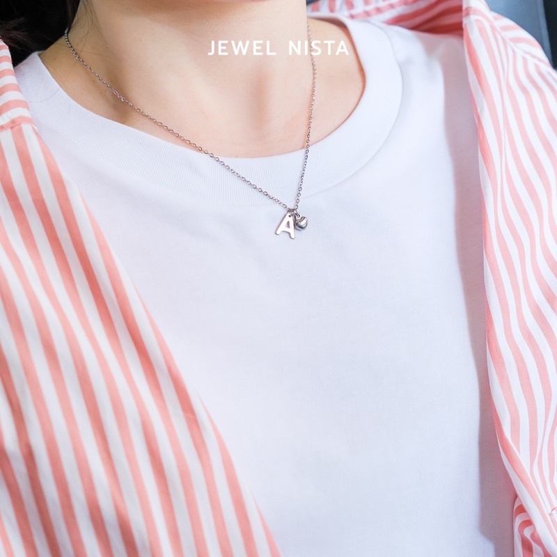 DIY letter + pendant necklace สร้อยคอจี้ตัวอักษร ห้อยจี้เพิ่มเลือกได้ [silver-สีเงิน]