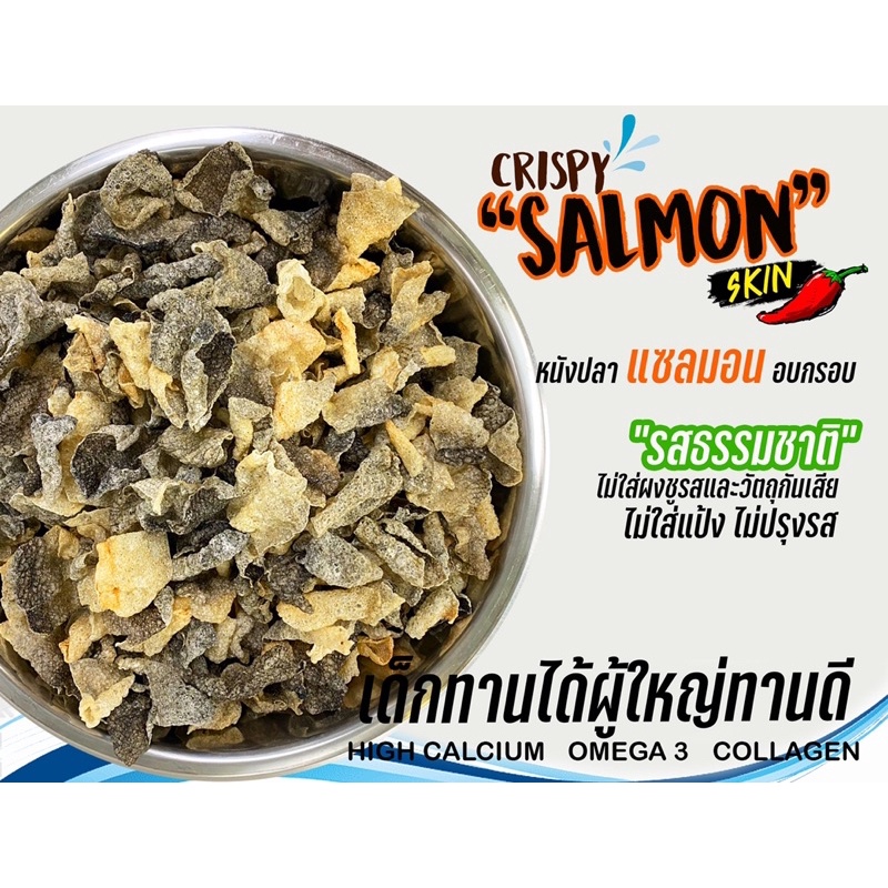 หนังปลาแซลมอนอบกรอบผสมพริกคั่วงา (ขนาดทดลอง) 0% Sugar คลีนทานได้ ไม่มีแป้ง