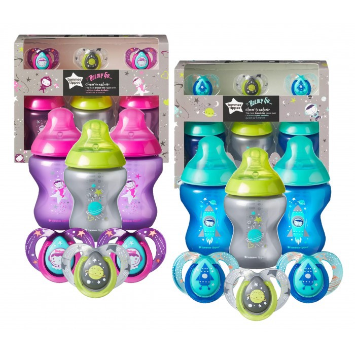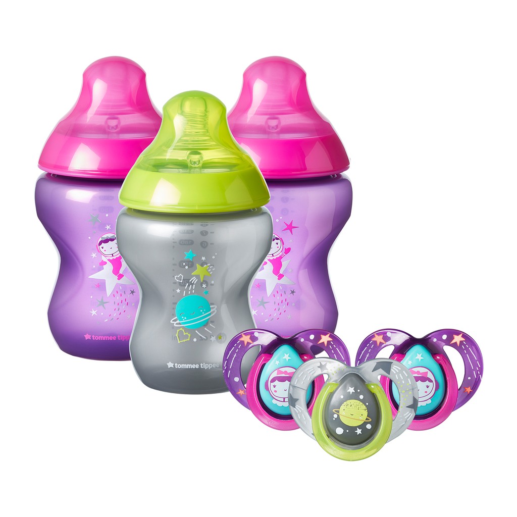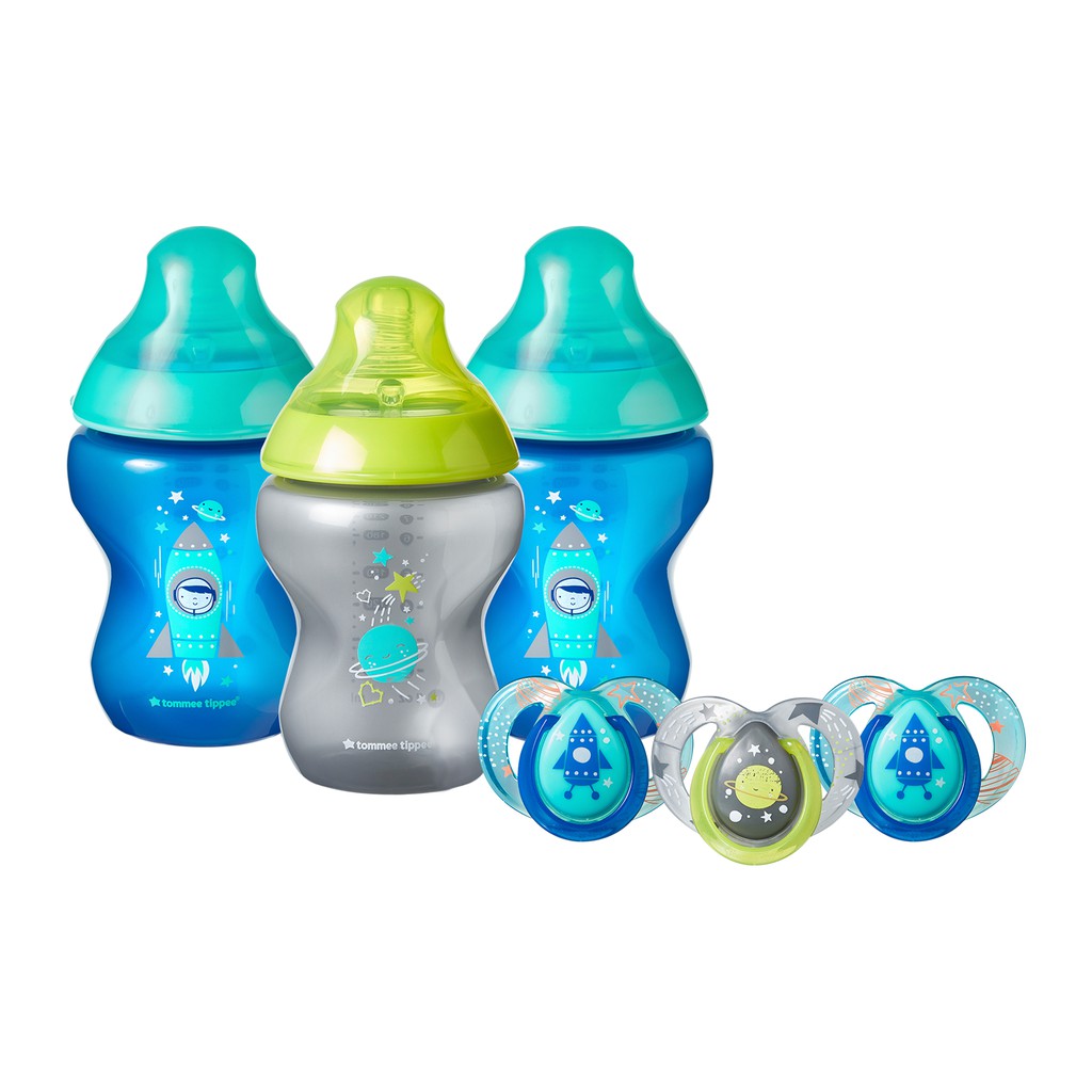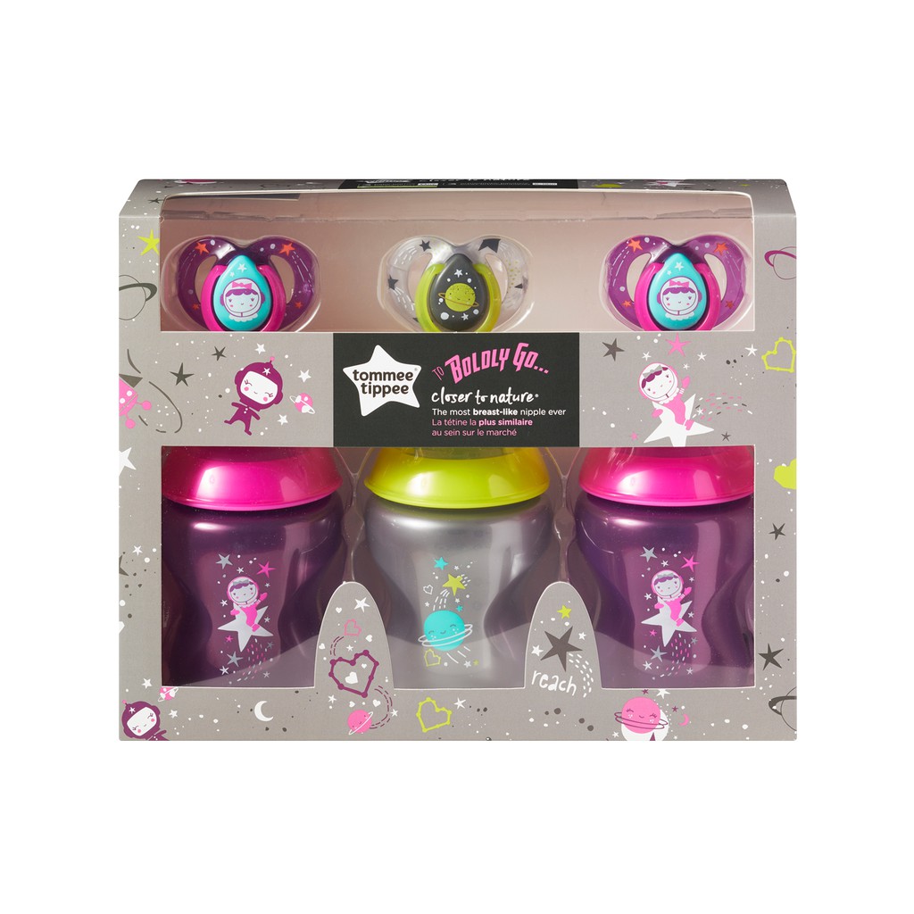 [3M+] Tommee Tippee ชุดขวดนม พร้อมจุกนมซิลิโคน และจุกนมดูดเล่น 3ขวด Boldly Go Baby Bottles and soother set 3pk 422810 422811