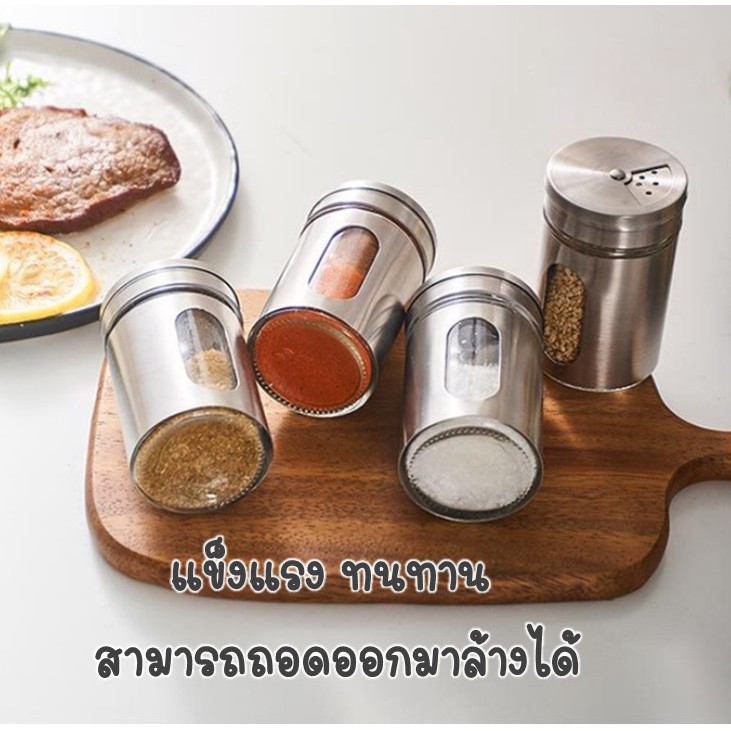 MUSI.HOME【ราคาถูก】H24 ขวดใส่เครื่องปรุงป่น ขวดพริกไทย กระปุกเครื่องปรุง ใสเห็นด้านใน ฝาสแตนเลส พริกป่น เครื่องปรุงผง