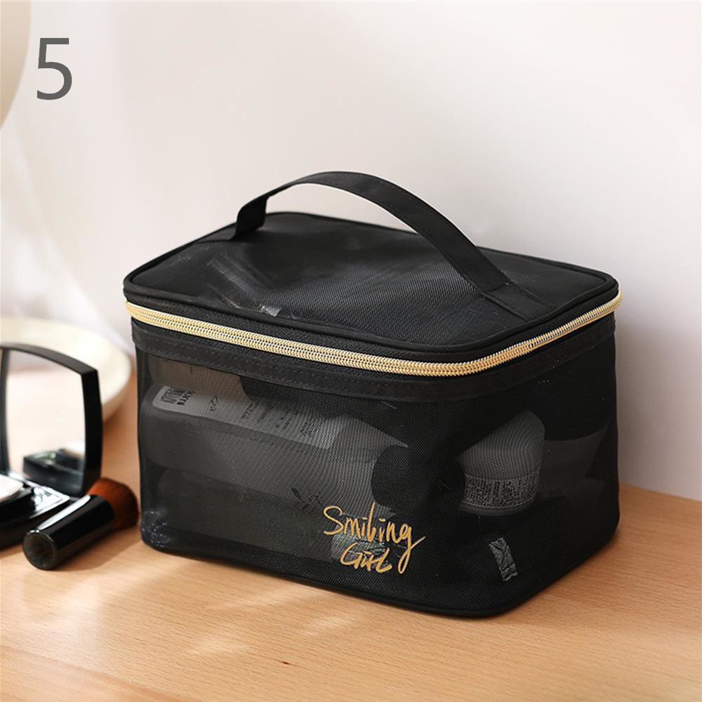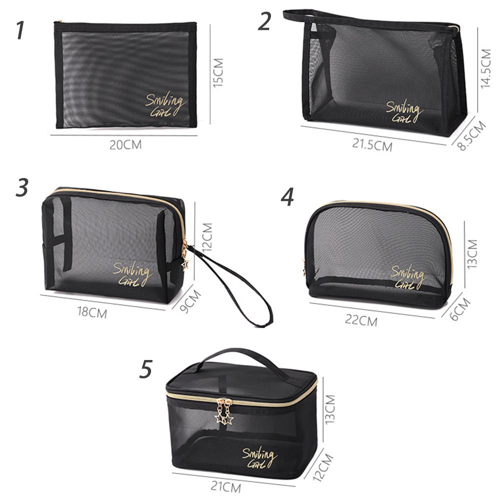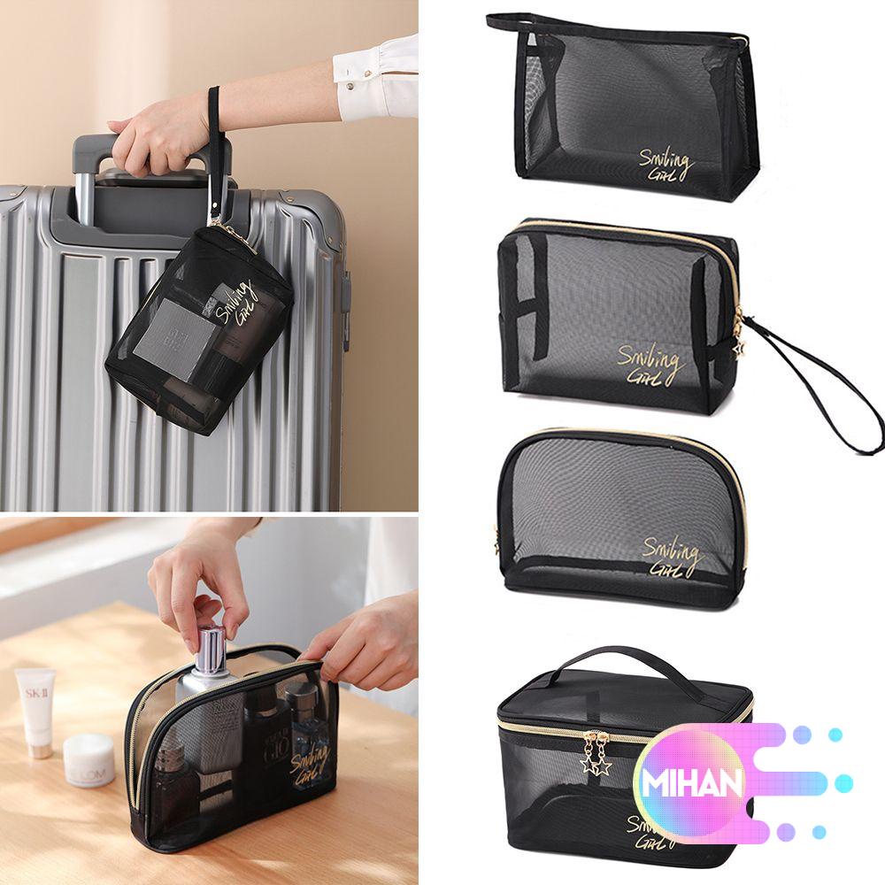 Mihan กระเป๋าเครื่องสําอาง ผ้าตาข่ายสีดํา จุของได้เยอะ 1/5 ชิ้น