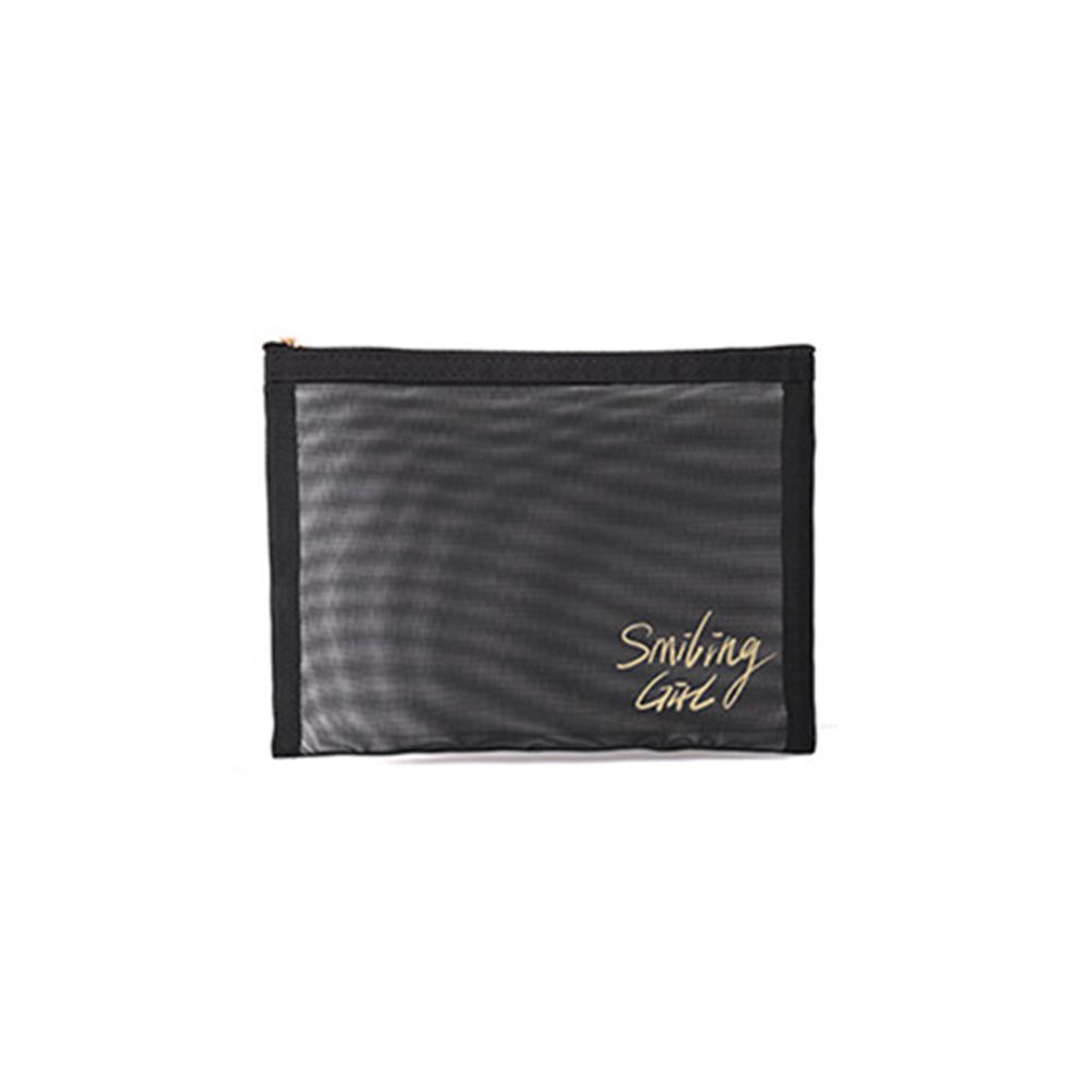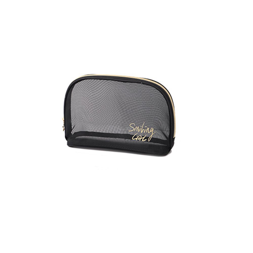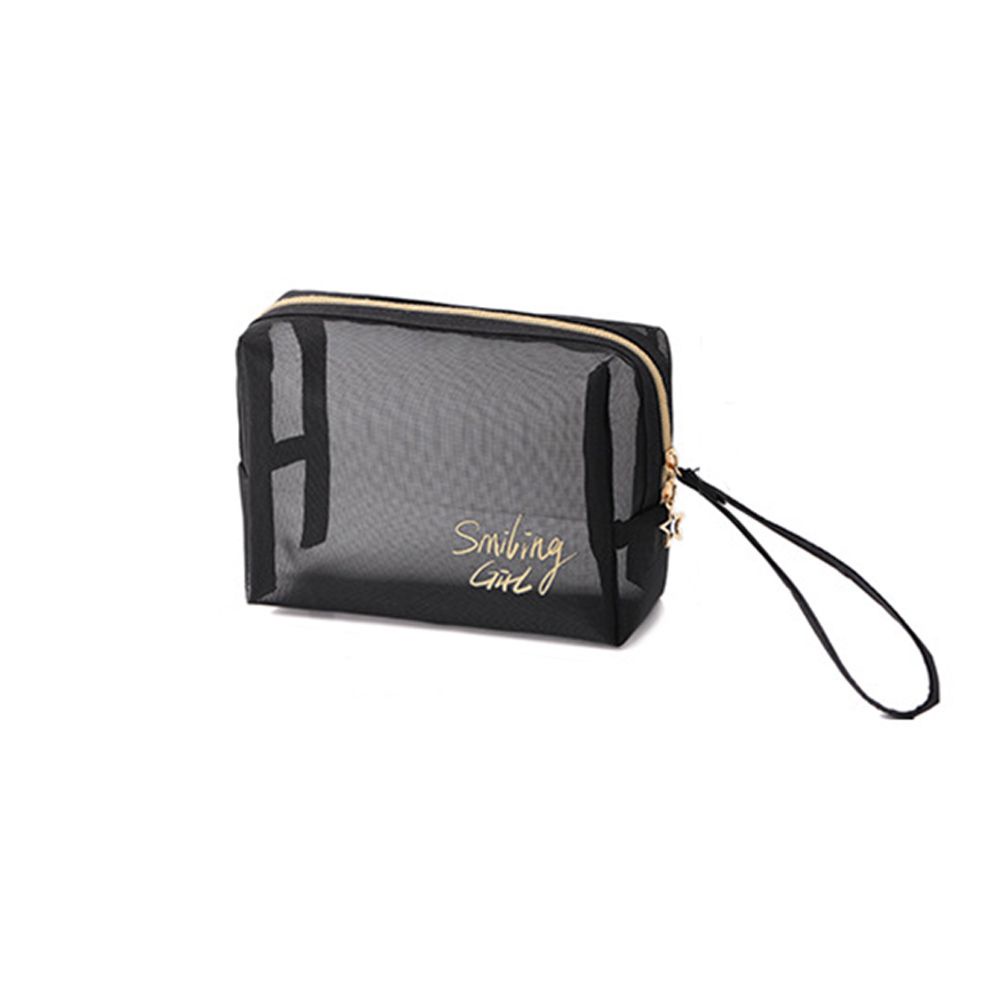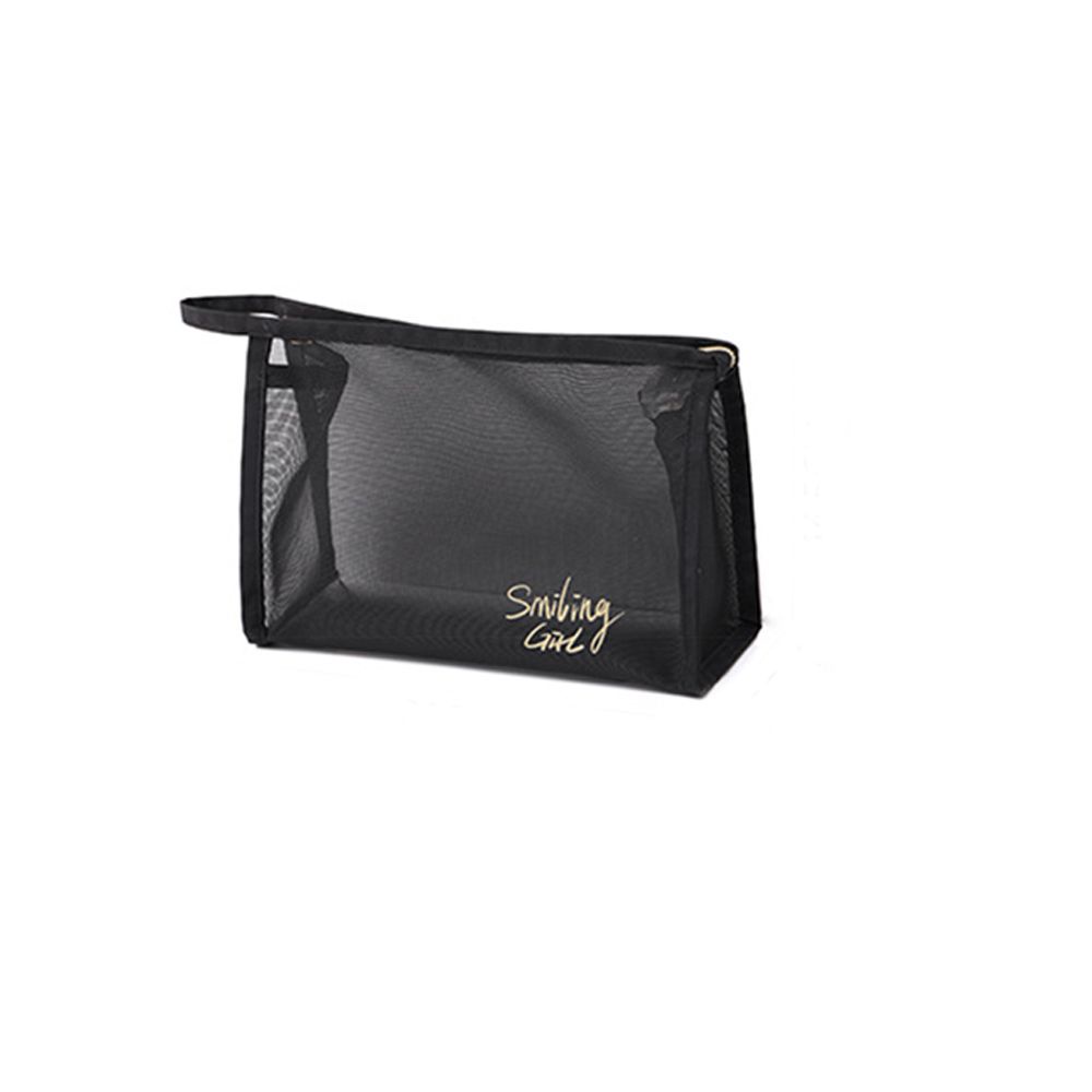 Mihan กระเป๋าเครื่องสําอาง ผ้าตาข่ายสีดํา จุของได้เยอะ 1/5 ชิ้น
