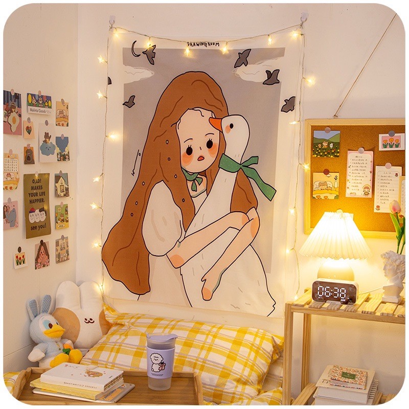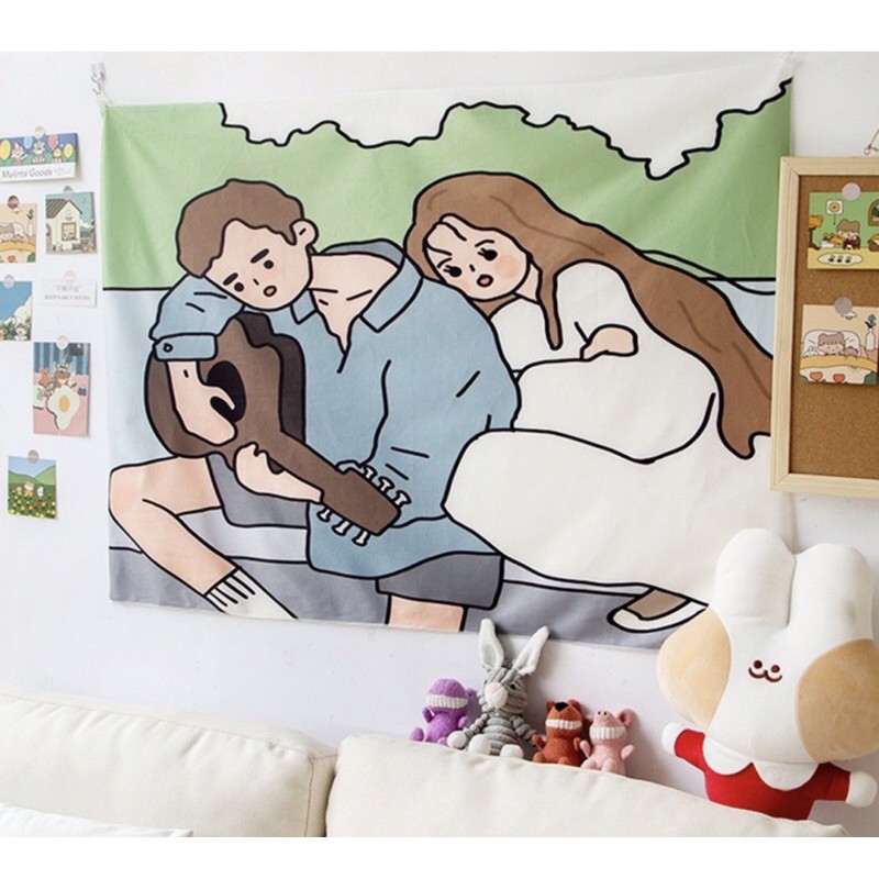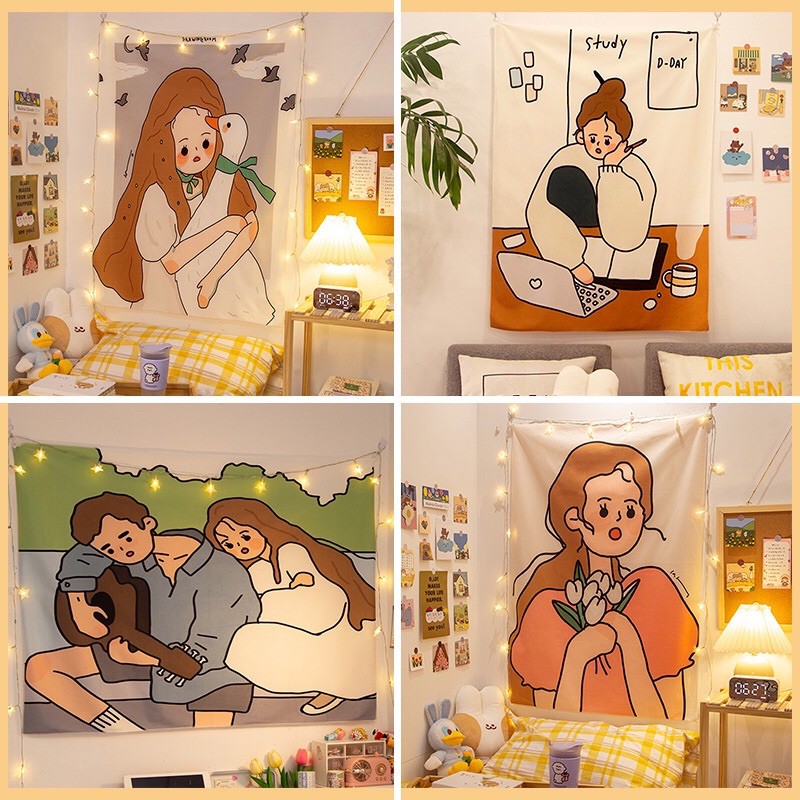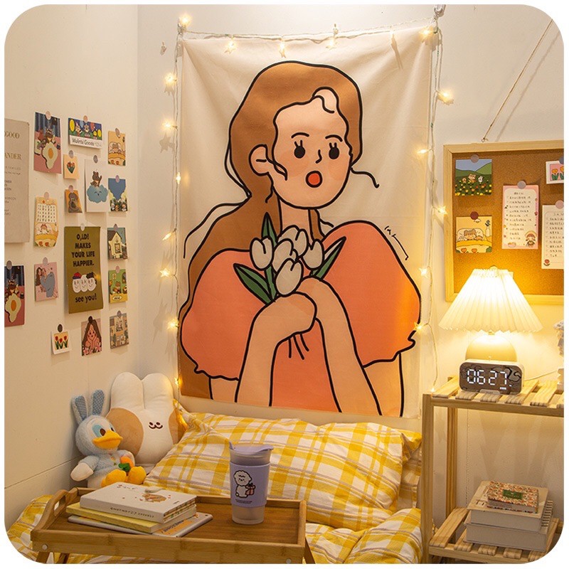 ✨พร้อมส่ง✨ ผ้าแต่งห้อง ผ้าติดผนัง ผ้าตกแต่งห้องนอนสไตล์เกาหลีน่ารักๆ💕
