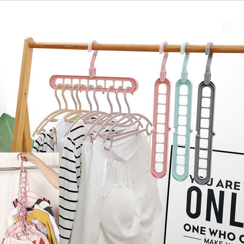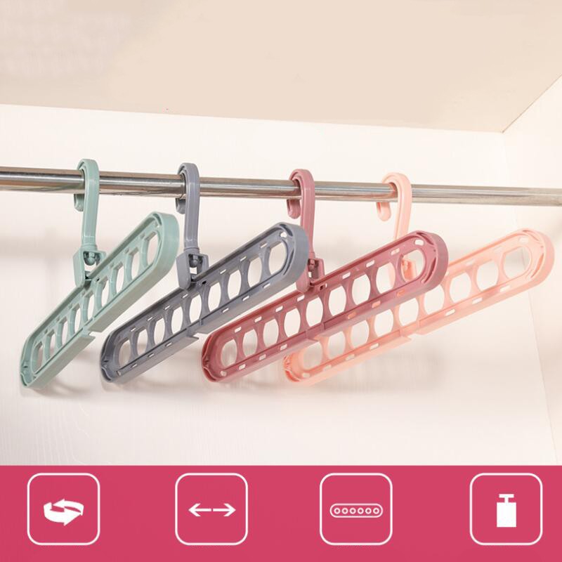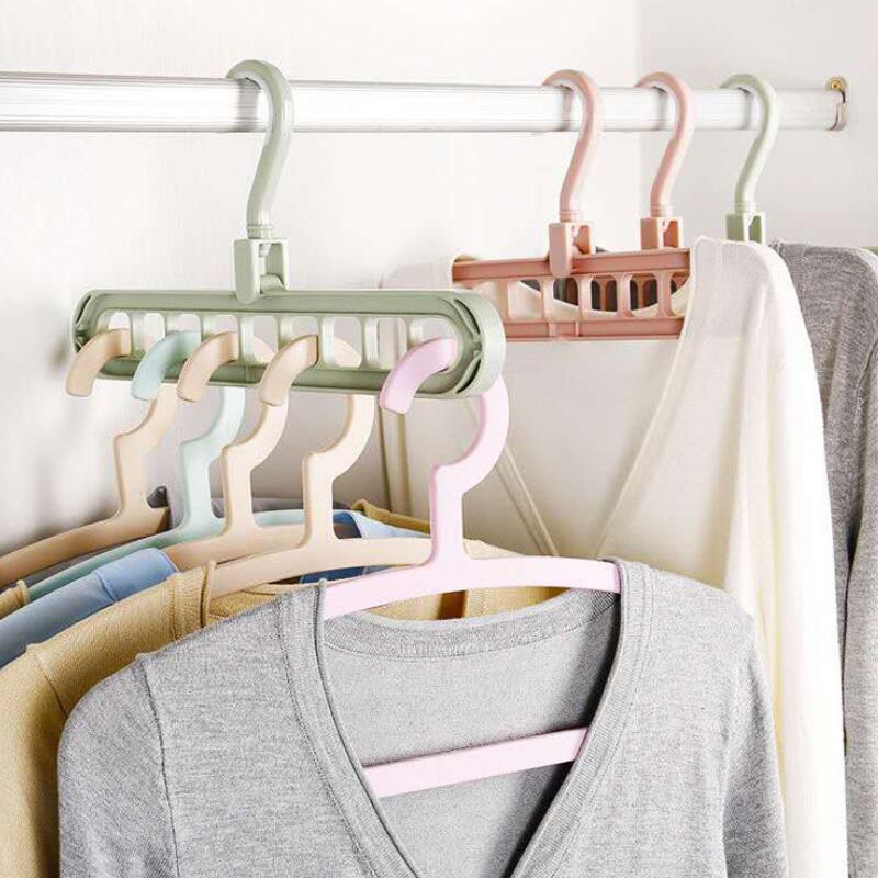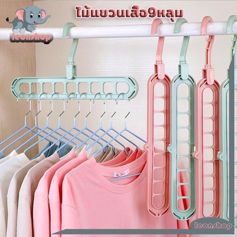 ไม้แขวนเสื้อ9หลุม ไม้แขวนผ้า 9 in1 ตะขอหมุนได้ 360องศา ประหยัดพื้นที่ มีให้เลือก 4 สี