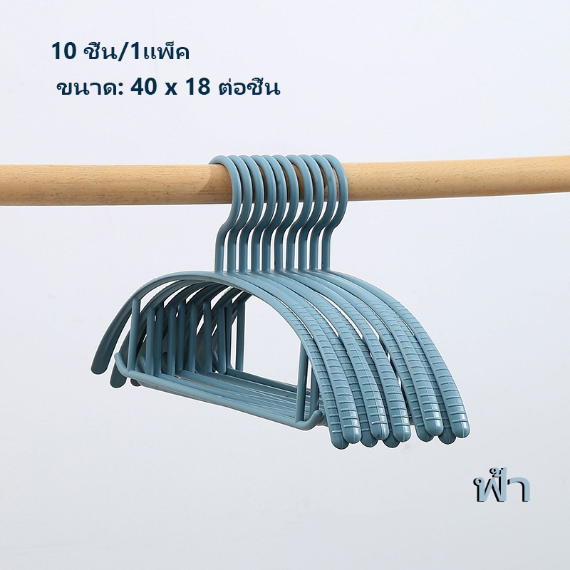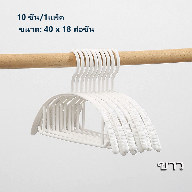 ไม้แขวนเสื้อ (40*20cm) แพค 10 ชิ้น แกนเป็นสแตนเลสป้องกันสนิม โดนน้ำได้ ตัวหนาป้องกันลื่นไถล