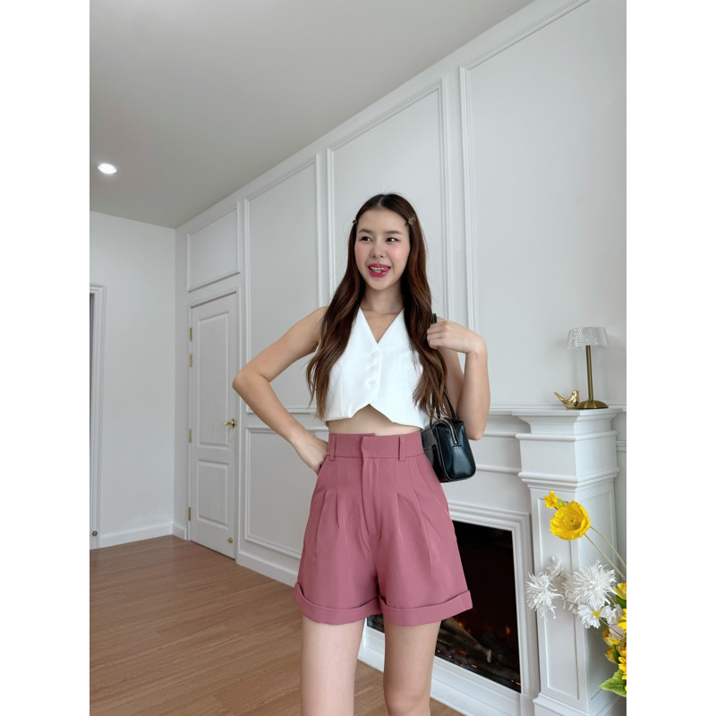 BEMYCHICกางเกงขาสั้นผู้หญิงพับขางานตะขอ กางเกงขาสั้นทำงาน กางเกงขาสั้นแฟชัน รุ่น mable