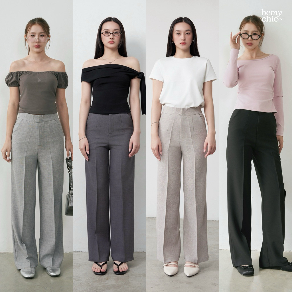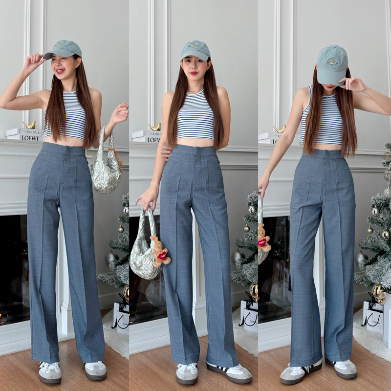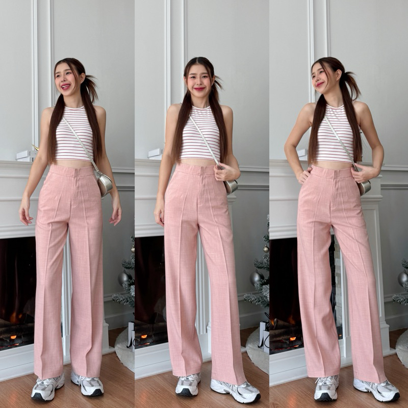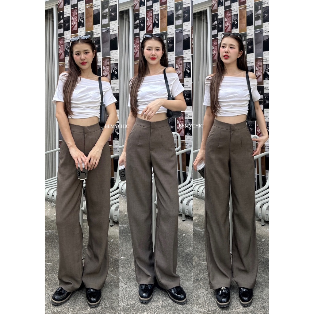 กางเกงขายาวผู้หญิง เอวสูง ทรงกระบอกกลาง ผ้าโซดา ใส่ทำงาน ใส่เที่ยว รุ่น CANDY by BEMYCHIC