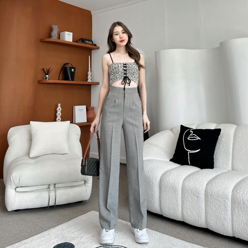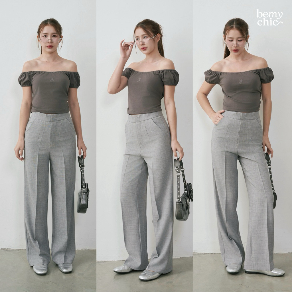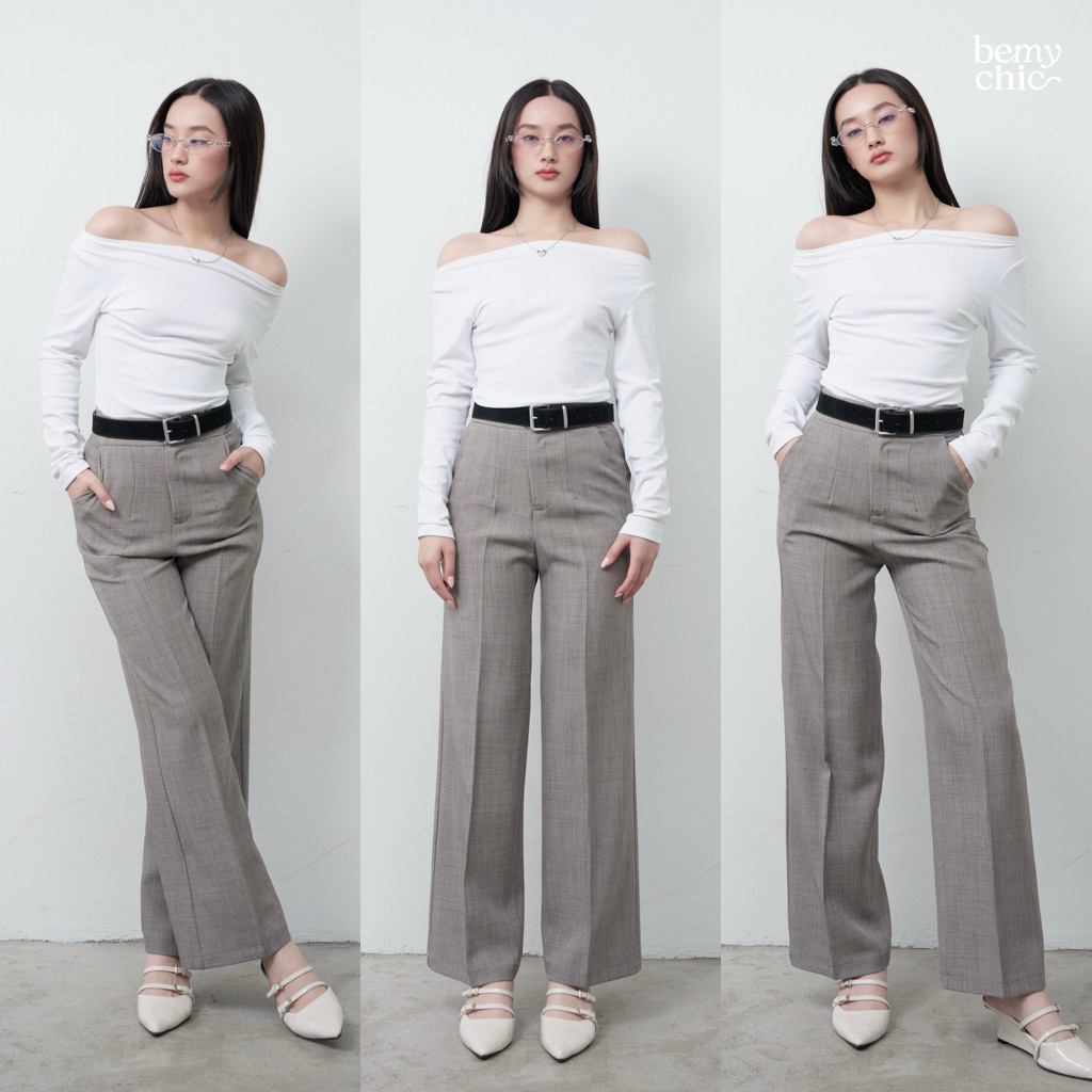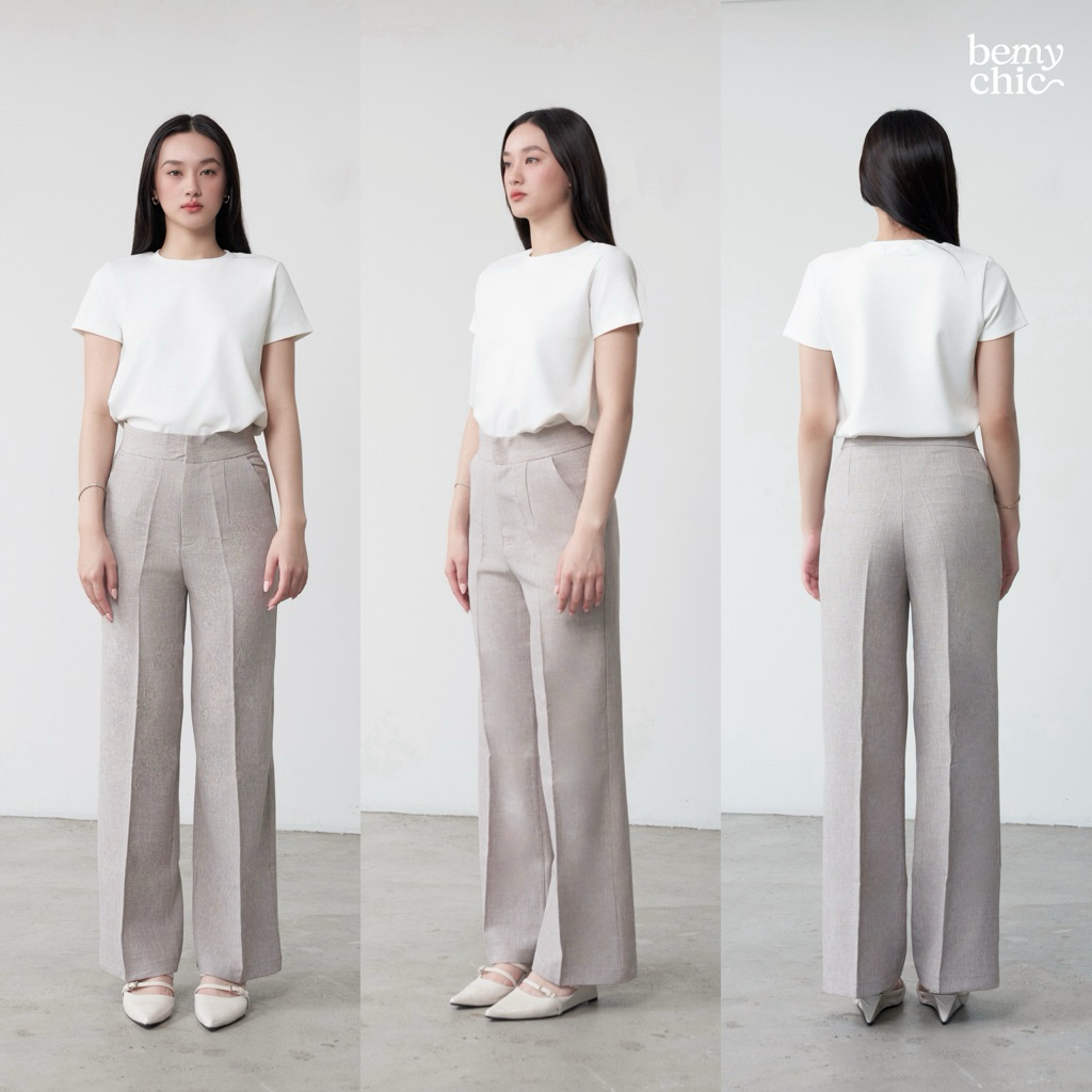 กางเกงขายาวผู้หญิง เอวสูง ทรงกระบอกกลาง ผ้าโซดา ใส่ทำงาน ใส่เที่ยว รุ่น CANDY by BEMYCHIC