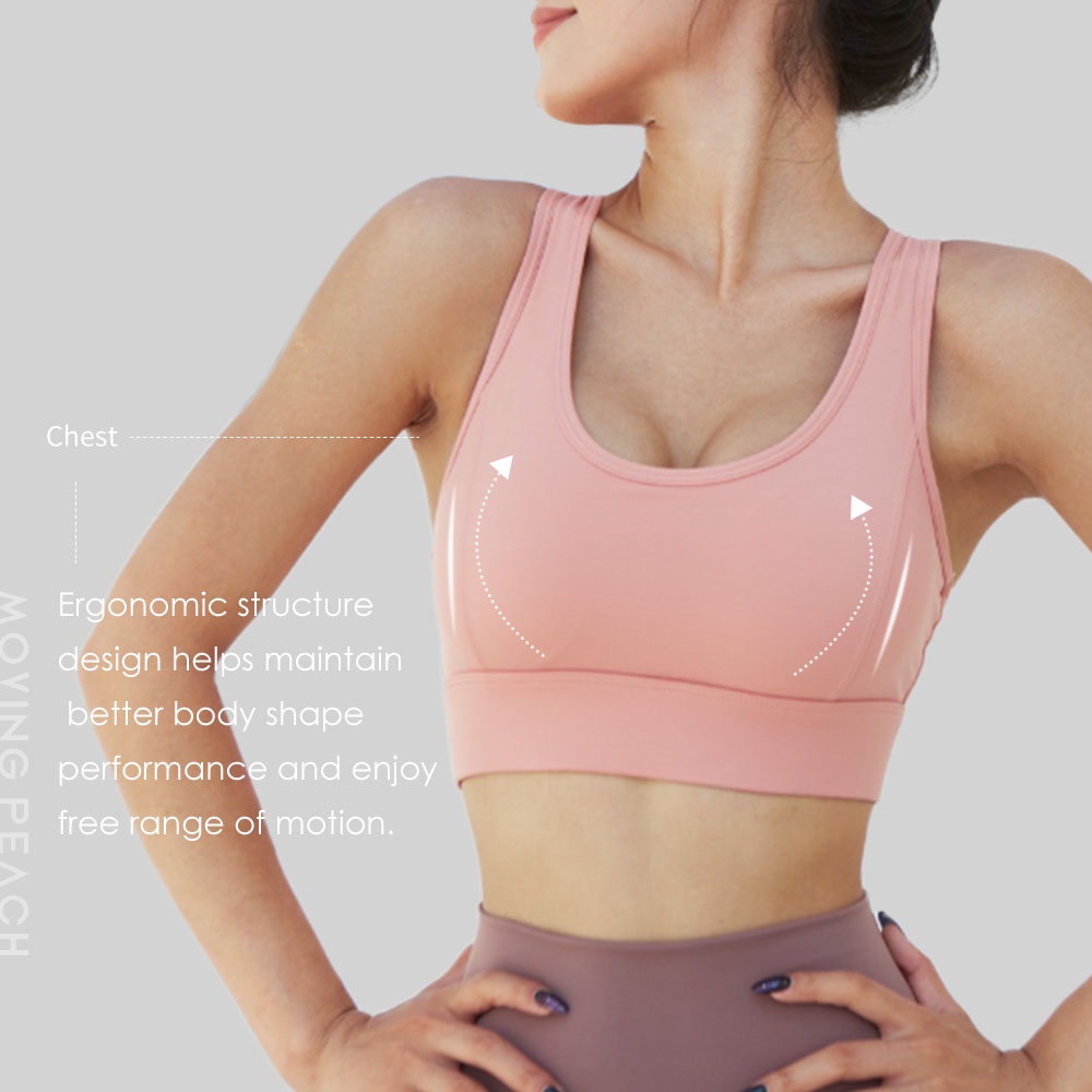 moving peach สปอร์ตบรา ชุดออกกำลังกาย ใส่เล่นโยคะ สีดำ/ขาว/ชมพู สำหรับผู้หญิง