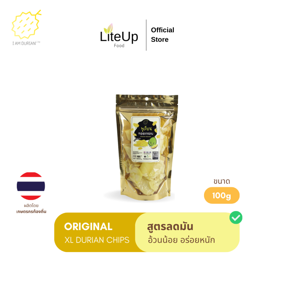 [ของดี เมืองจันทร์] I Am Durian Lite ทุเรียนทอด อ้วนน้อย อร่อยหนัก - Original chips - No sugar added