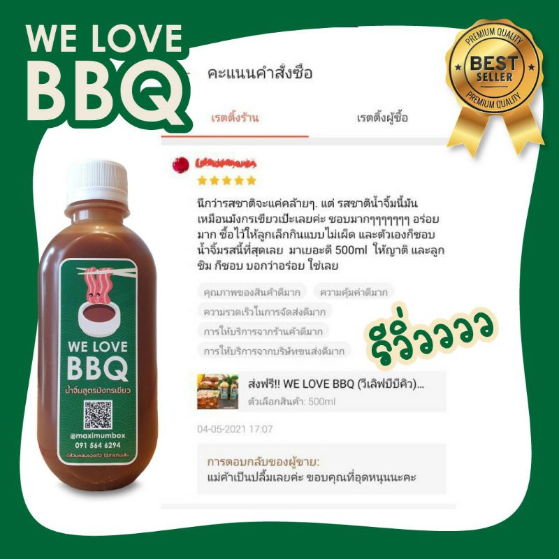 WE LOVE BBQ (วีเลิฟบีบีคิว)น้ำจิ้มบาร์บีคิวปิ้งย่าง หมูกระทะ น้ำจิ้มบาบีก้อน ใช้โค้ดส่งฟรี!!