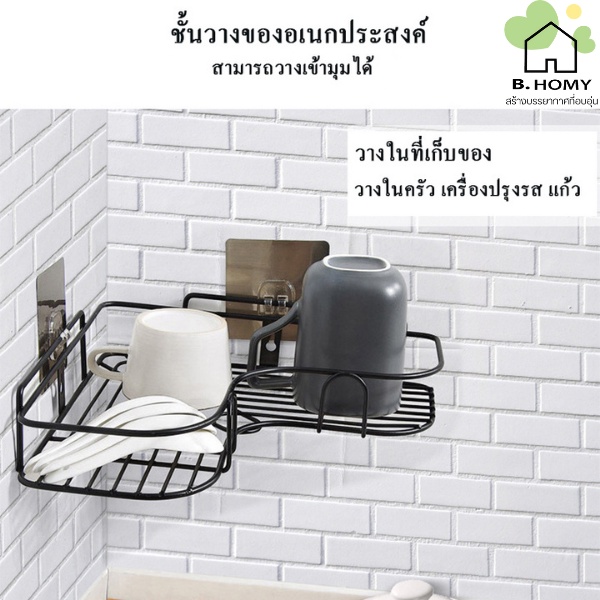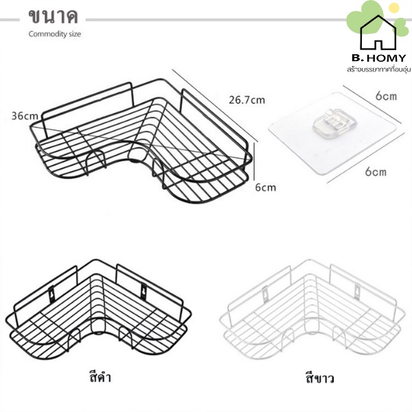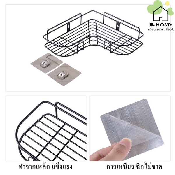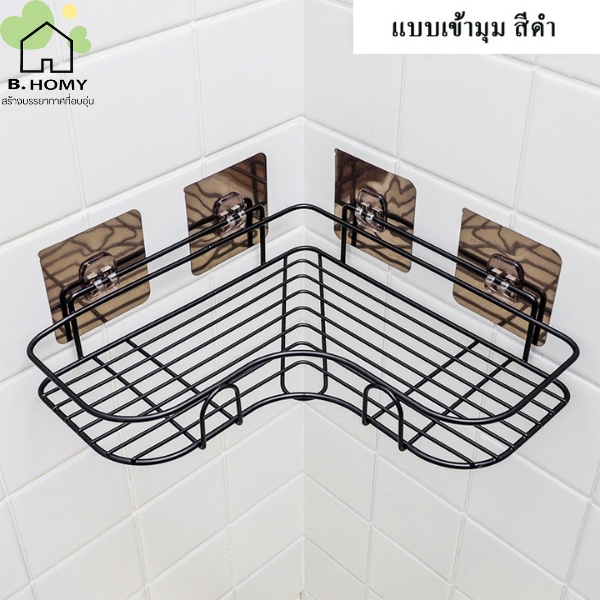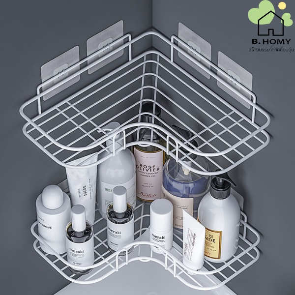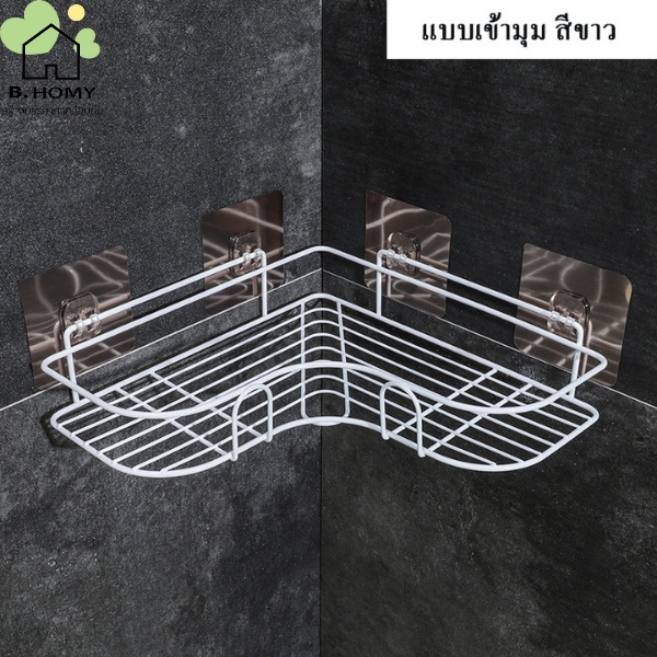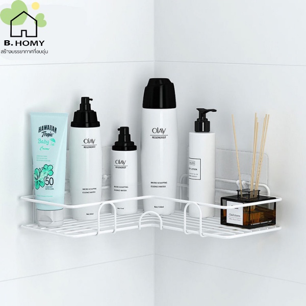 ชั้นวางของติดผนัง ที่วางของเข้ามุมสามเเหลียม ติดผนัง ไม่ต้องเจาะรู เข้ามุม ชั้นวางของในห้องน้ำ ชั้นวางของในห้อง B.HOMY