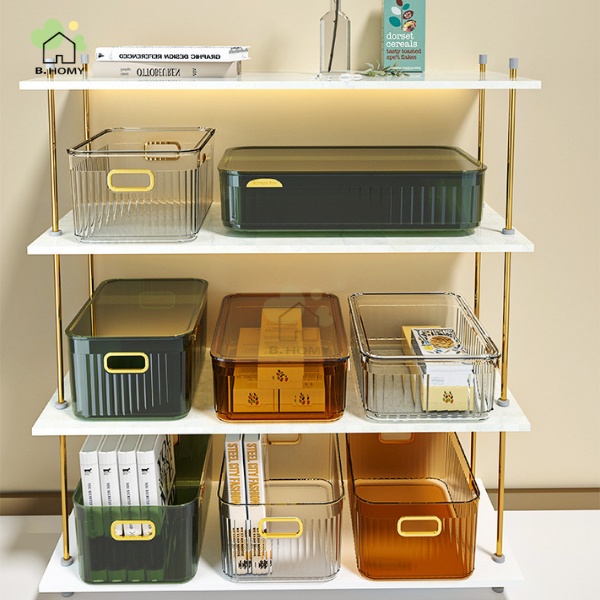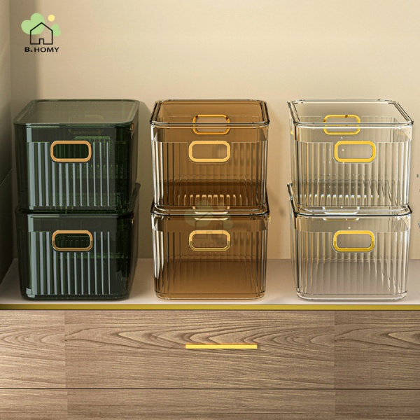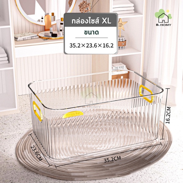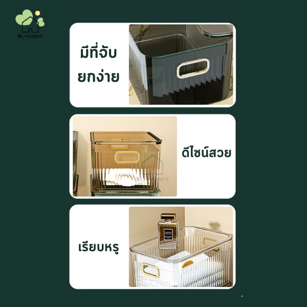 กล่องเก็บของ มี5ขนาด มีฝา กล่องใส่เครื่องสำอาง ใช้จัดระเบียบ ใส่ของอเนกประสงค์ วัสดุPET ดีไซน์สวย เรียบหรู B.HOMY