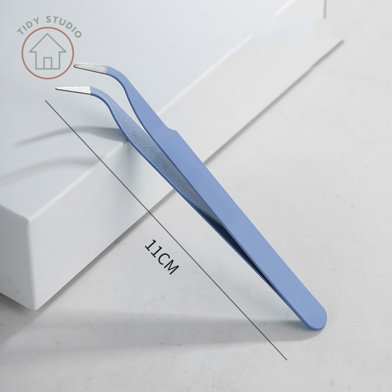 คีมคีบสเตนเลสยาว 11 ซม. แหนบงีบแบบปากงอ ที่คีบสติ้กเกอร์ ฟอร์เซป