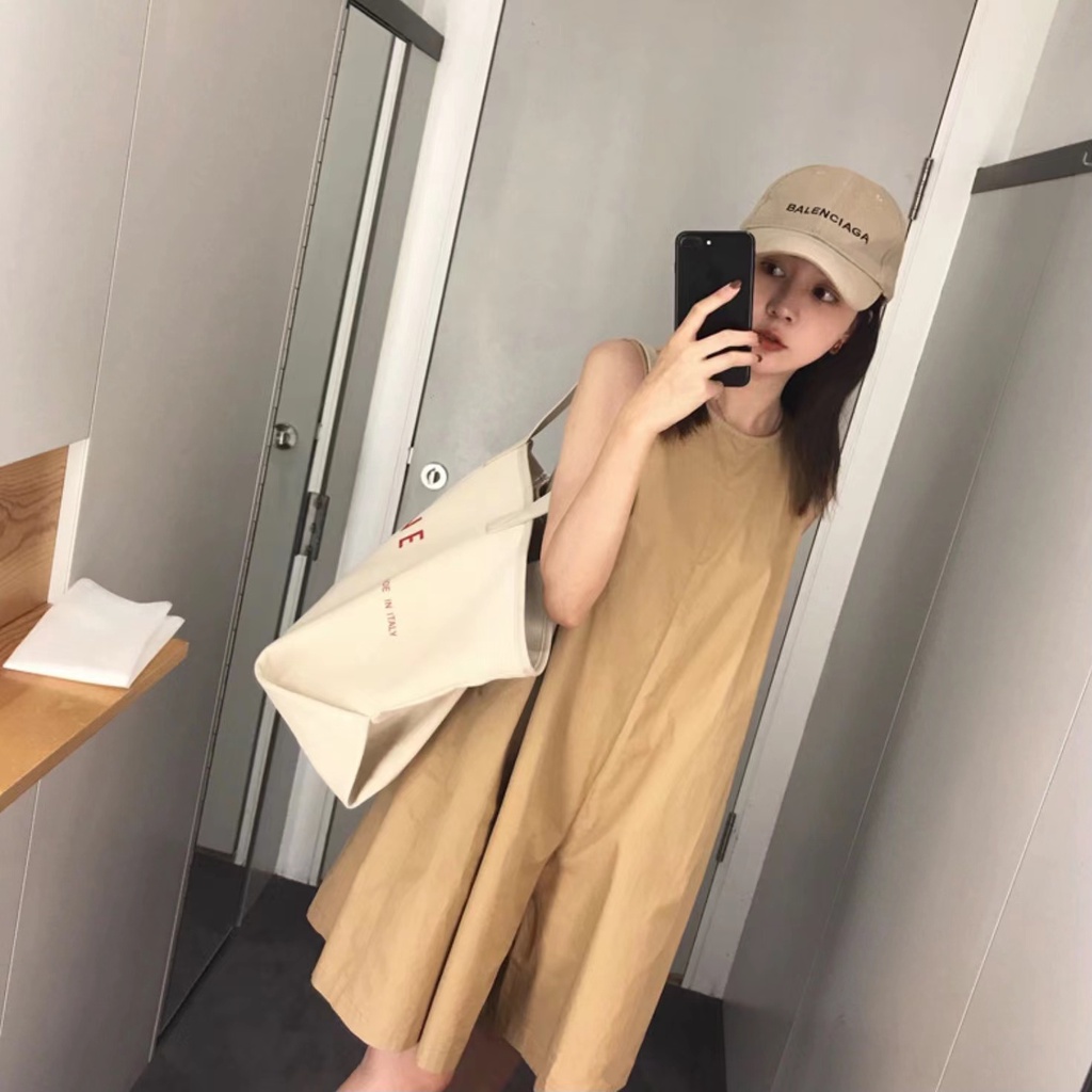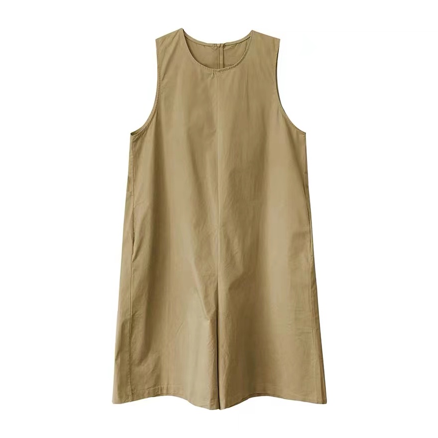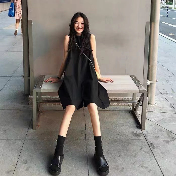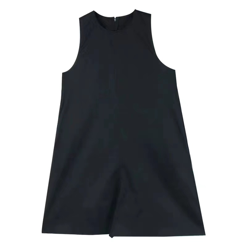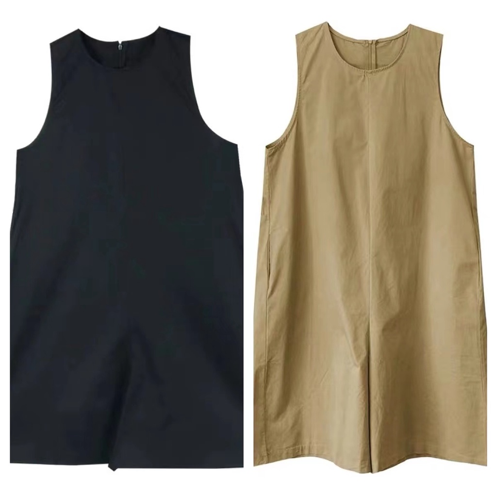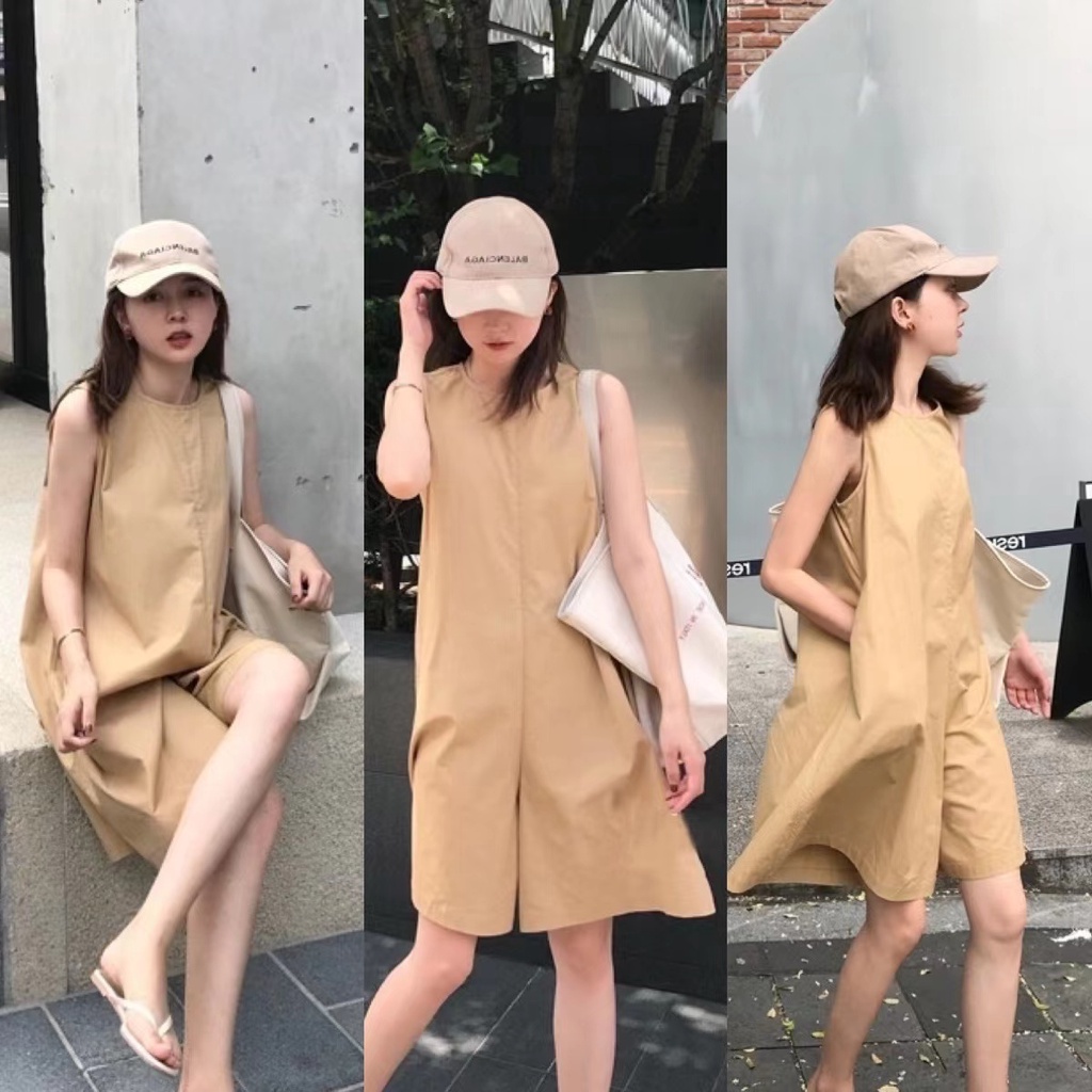 จั๊มสูทขาสั้น เดรสแขนกุด คอกลม แฟชั่นเกาหลี เดรสมินิมอล สไตล์เรียบหรู