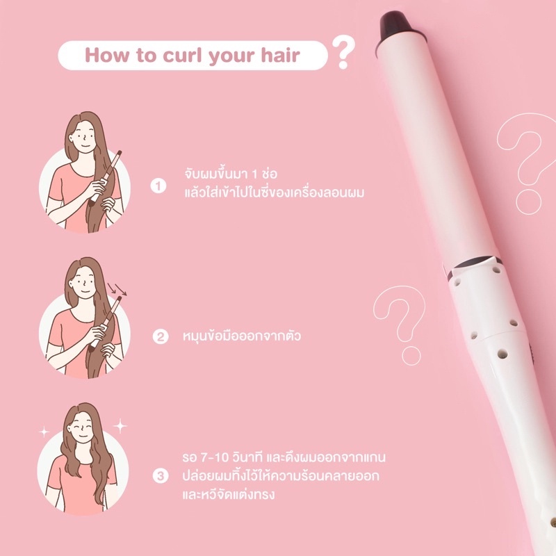 🔥Hot Sale Pink เครื่องม้วน ม้วนผมลอน 25mm/28mm/32mm เหมาะสำหรับผมสั้น/กลาง/ยาว(พร้อมส่ง!)