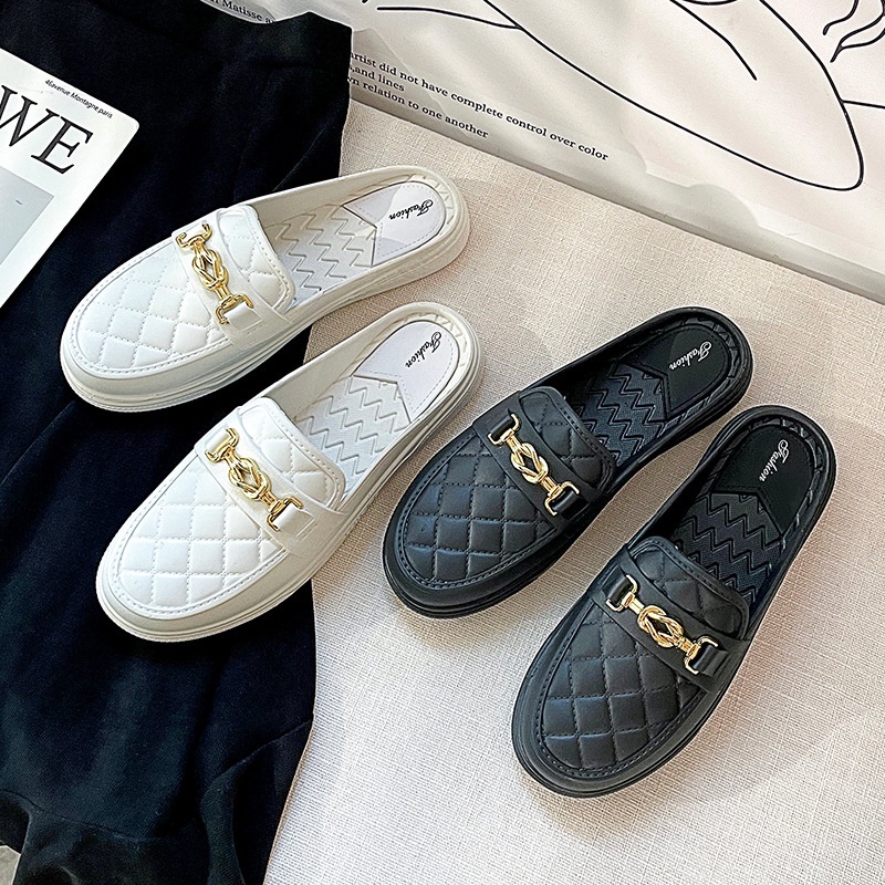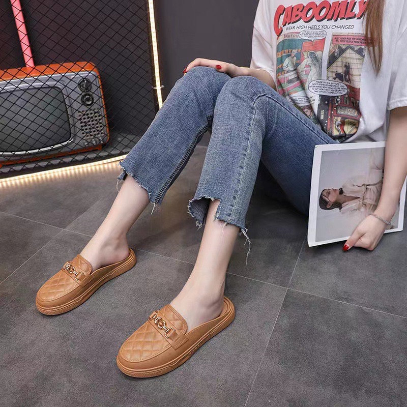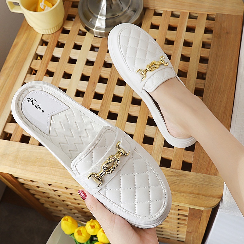 รองเท้าคัชชู แบบสวมเปิดส้น พื้นนิ่มใส่สบาย รองเท้าแฟชั่น มี 3 สี ดำ น้ำตาล ขาว
