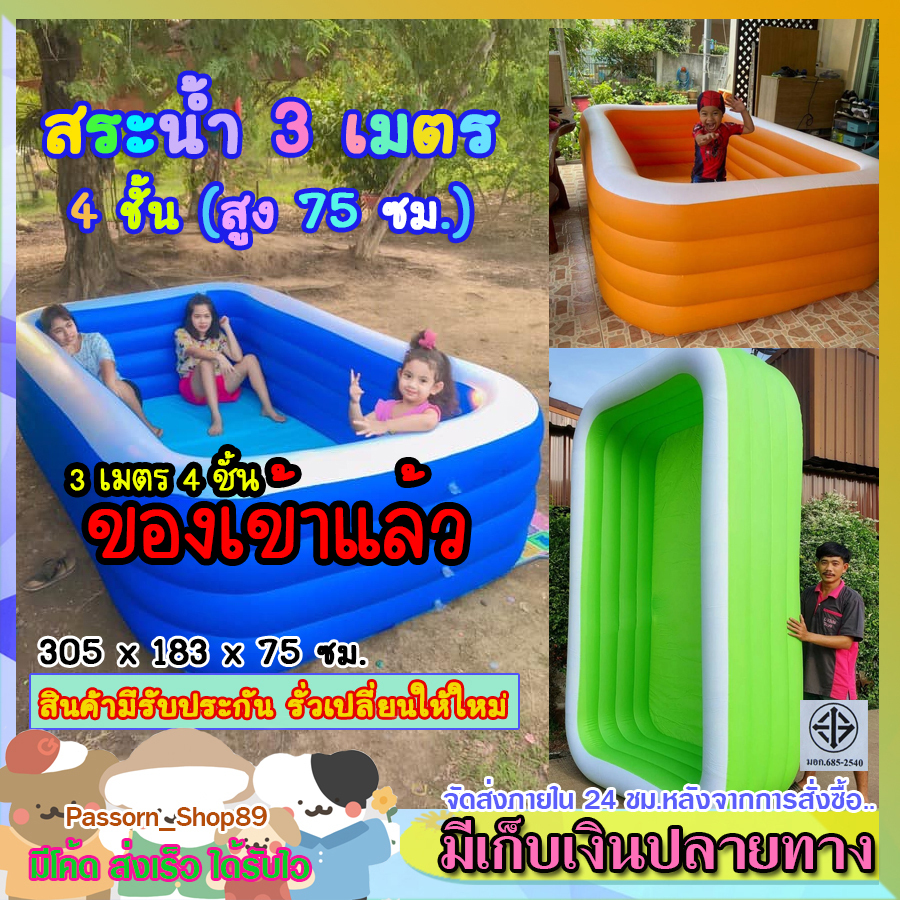 🔥Summer 2025🔥 สระน้ำ 3 เมตร 4 ชั้น สระน้ำเป่าลม (สูงพิเศษ 75 ซม.) สระน้ำครอบครัว สระเป่าลมขนาดใหญ่่ สระน้ำเด็ก