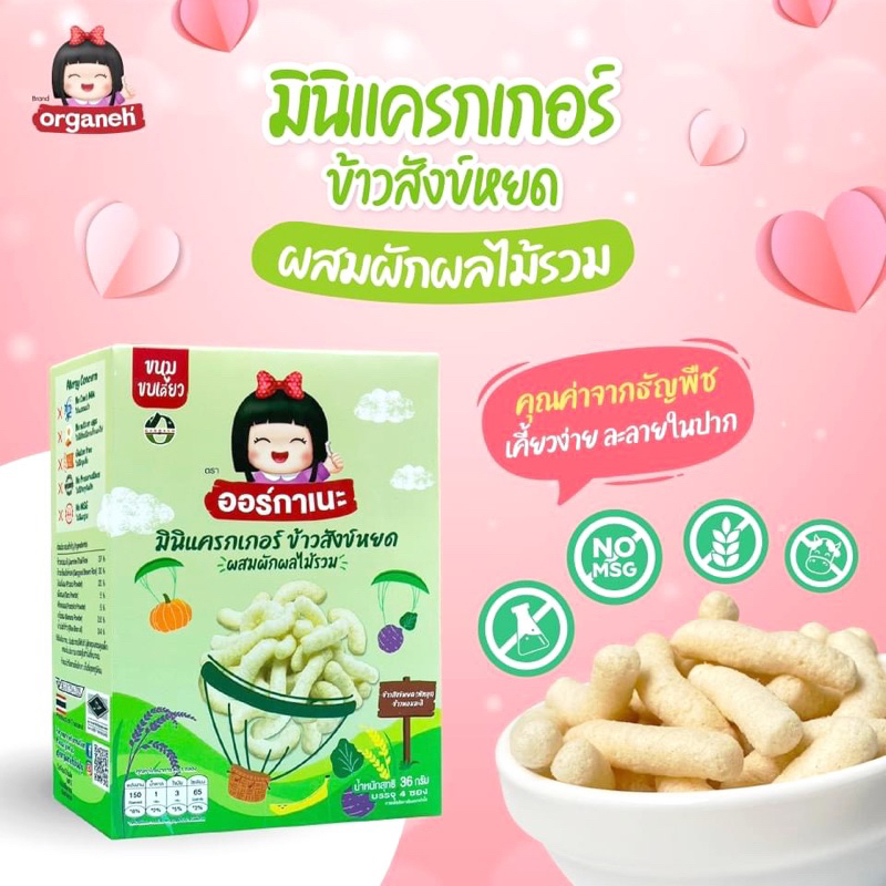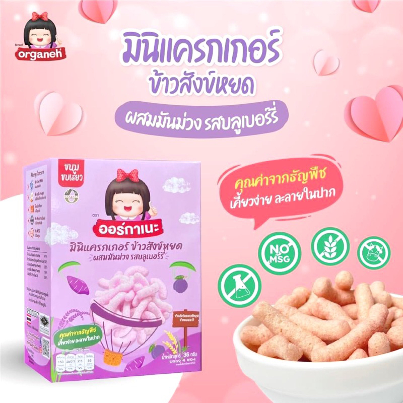ORGANEH มินิแครกเกอร์ ข้าวสังห์หยด ออร์กาเนะ 1 กล่อง มีฮาลาล ขนมเด็ก อาหารเด็ก
