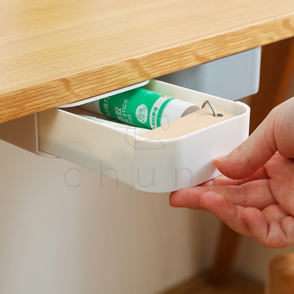 เก๊ะลิ้ นชักติดกาว หัวกลม ติดโต๊ะทำงาน โต๊ะจักร ลิ้นชักเอนกประสงค์ Chuno แบบติดกาวติดที่ไหนก็ได้ ไม่ต้องเจาะ