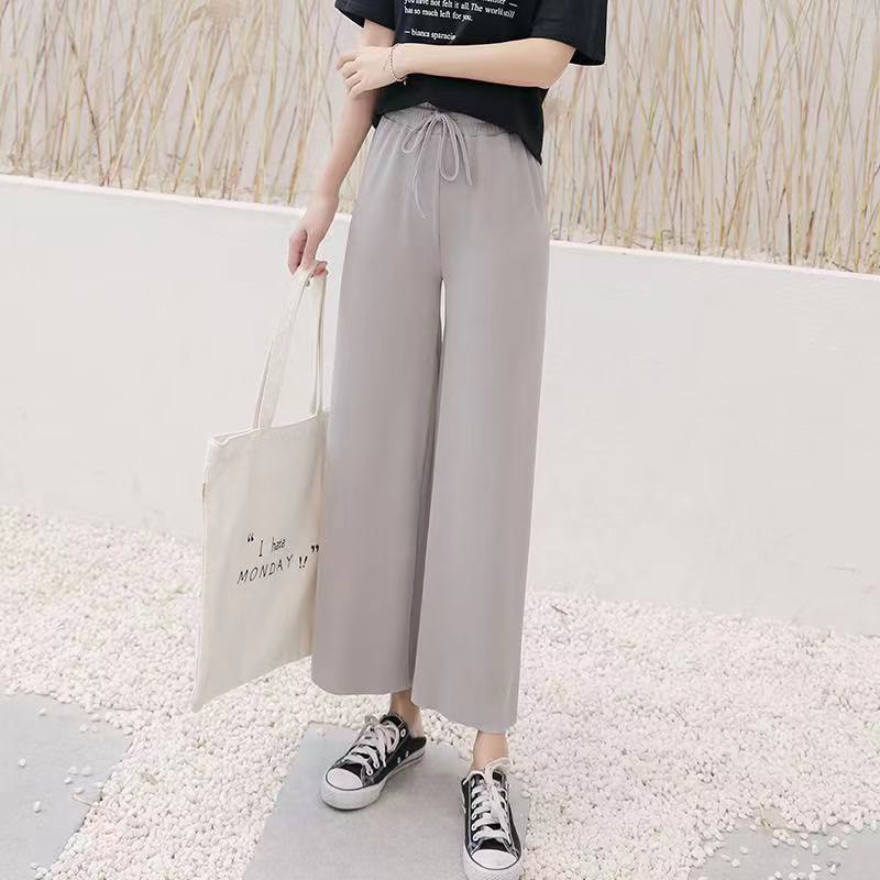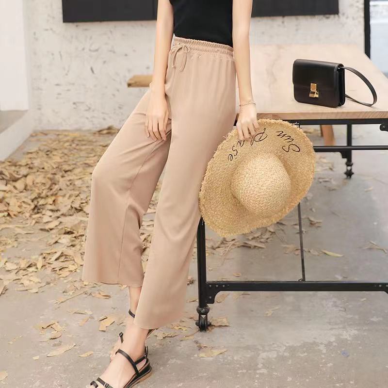 ELAND_SHOPกางเกงขายาวผู้หญิง แฟชั่น ทรงหลวมเอวสูง กางเกงขากว้าง สวยๆสไตล์เกาหลี