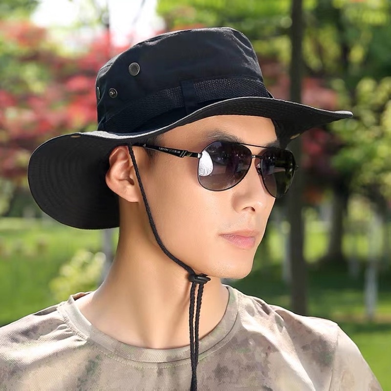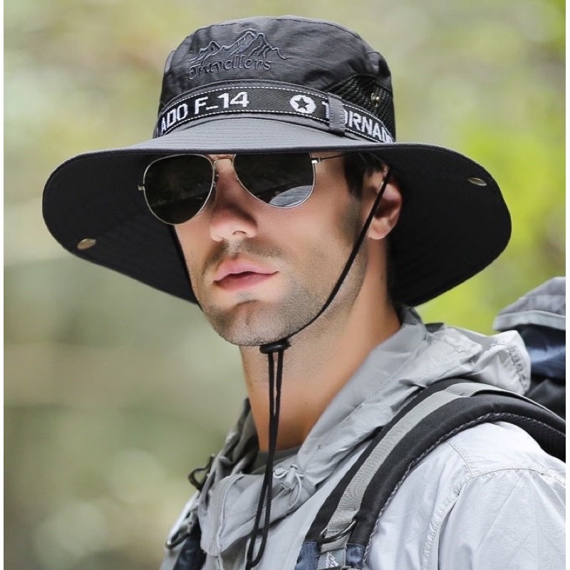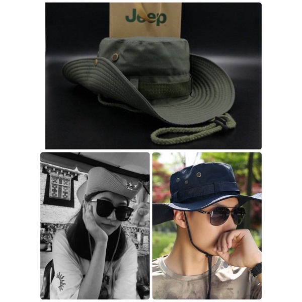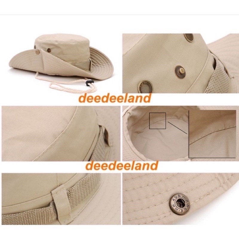 หมวกเดินป่า หมวกซาฟารี กันแดด มีสายคล้อง ผ้าหนา เกรดเอ สไตล์เกาหลี