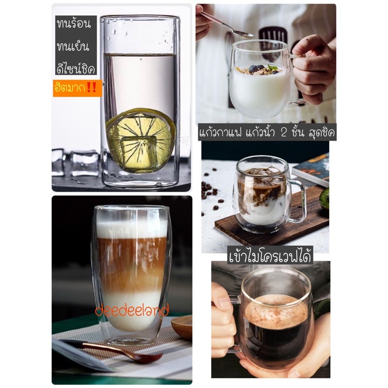 แก้วกาแฟ แก้วน้ำ สองชั้น น้ำหนักเบา ทนร้อนเย็น จับไม่ร้อน สุดชิค