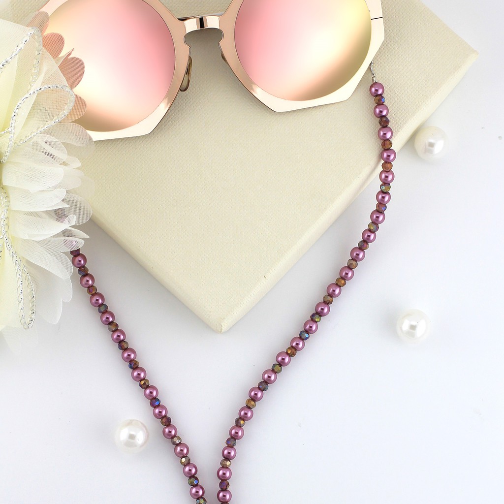 สร้อยคล้องแมส คล้องแว่นตา มุกแก้ว มี 18 สี
