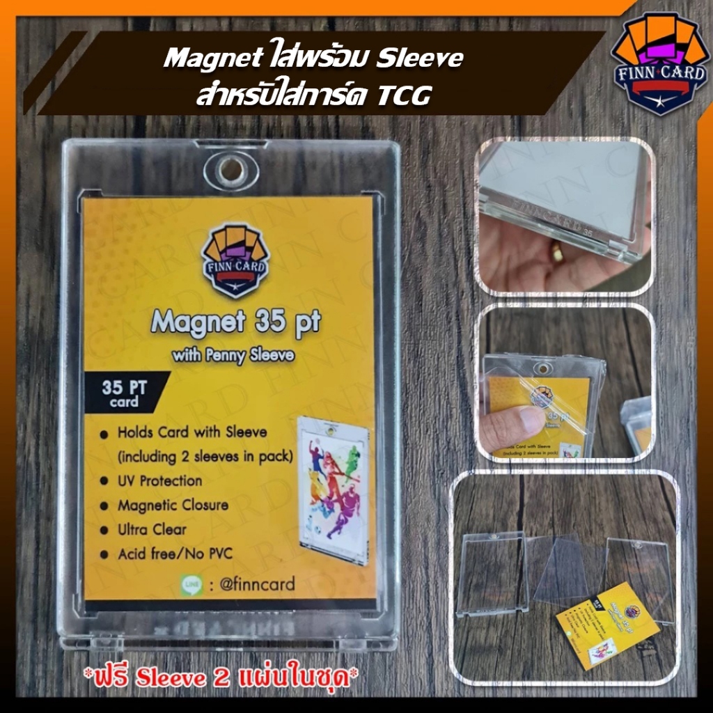 Finncard Magnetic Card Holder ป้องกัน UV แม็กเน็ตใสวิ๊ง ใส่การ์ดสะสม หมุดทอง ขนาด35pt-360pt มีmagnet ฟิล์มกันรอย MN