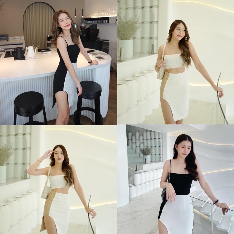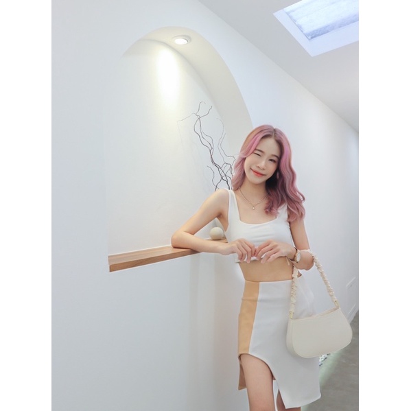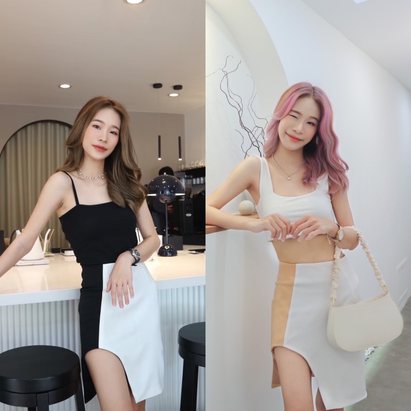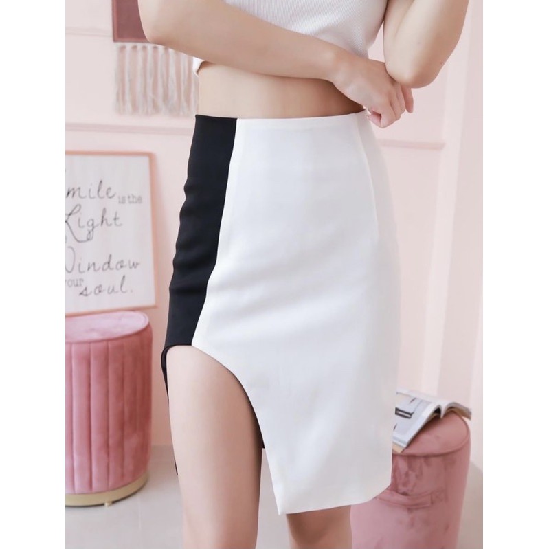 AW00#Taya Fabrique- กระโปรงเอวสูงทรงดินสอผ่าเว้าหน้า