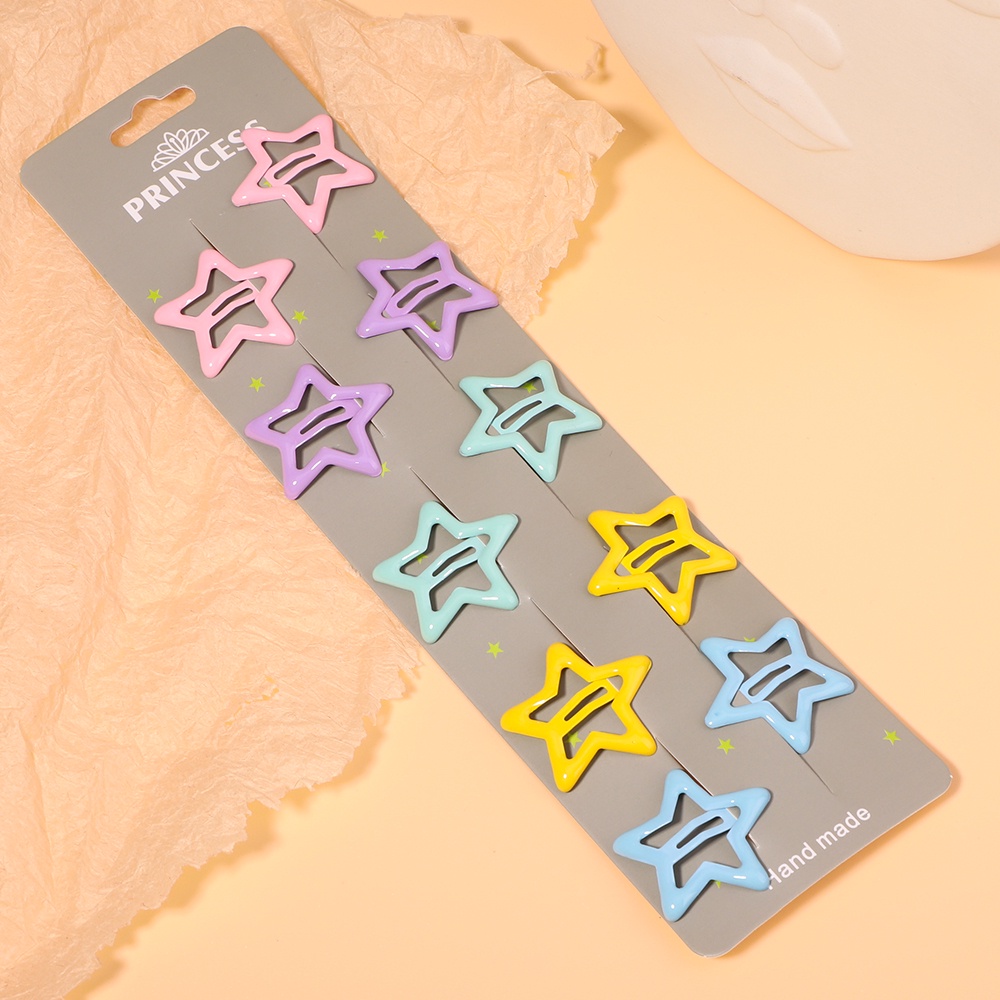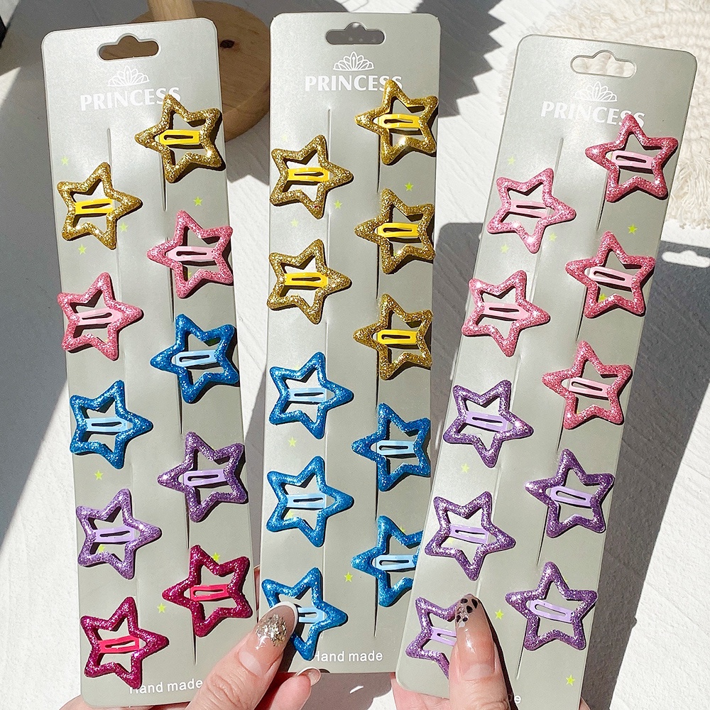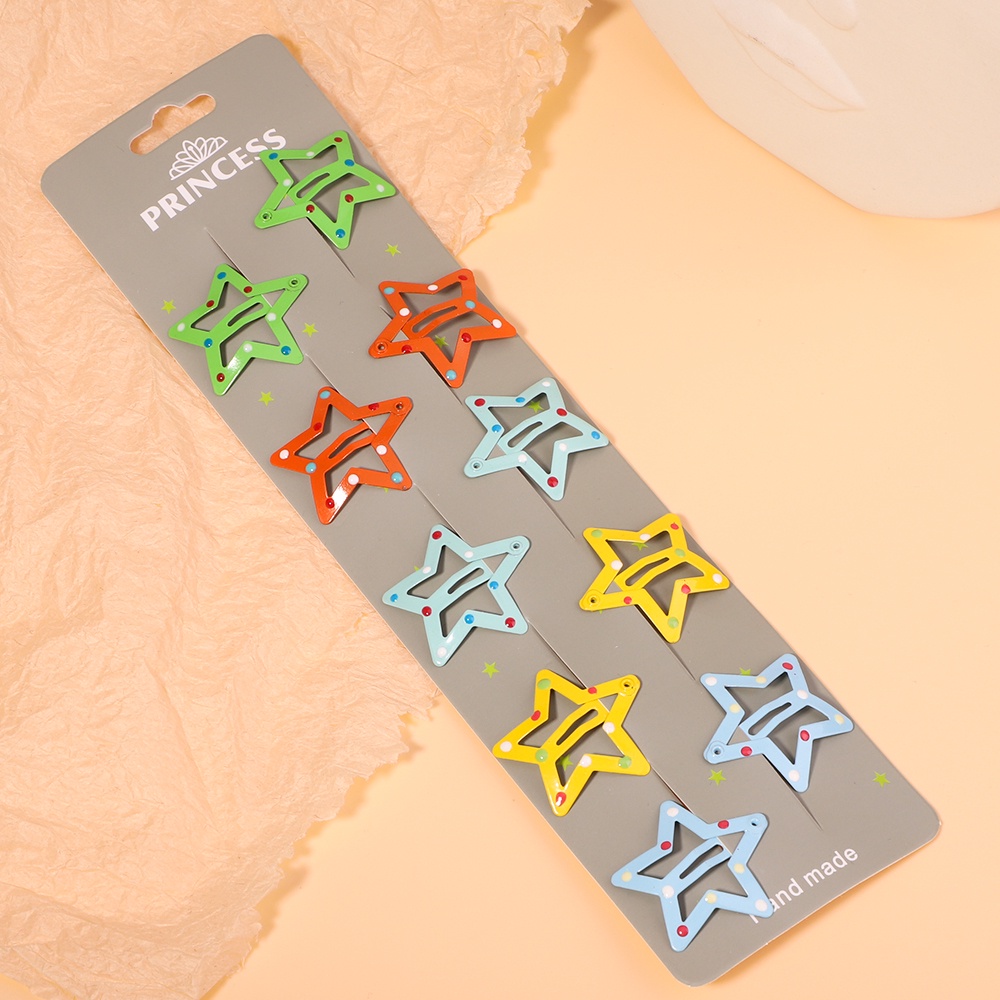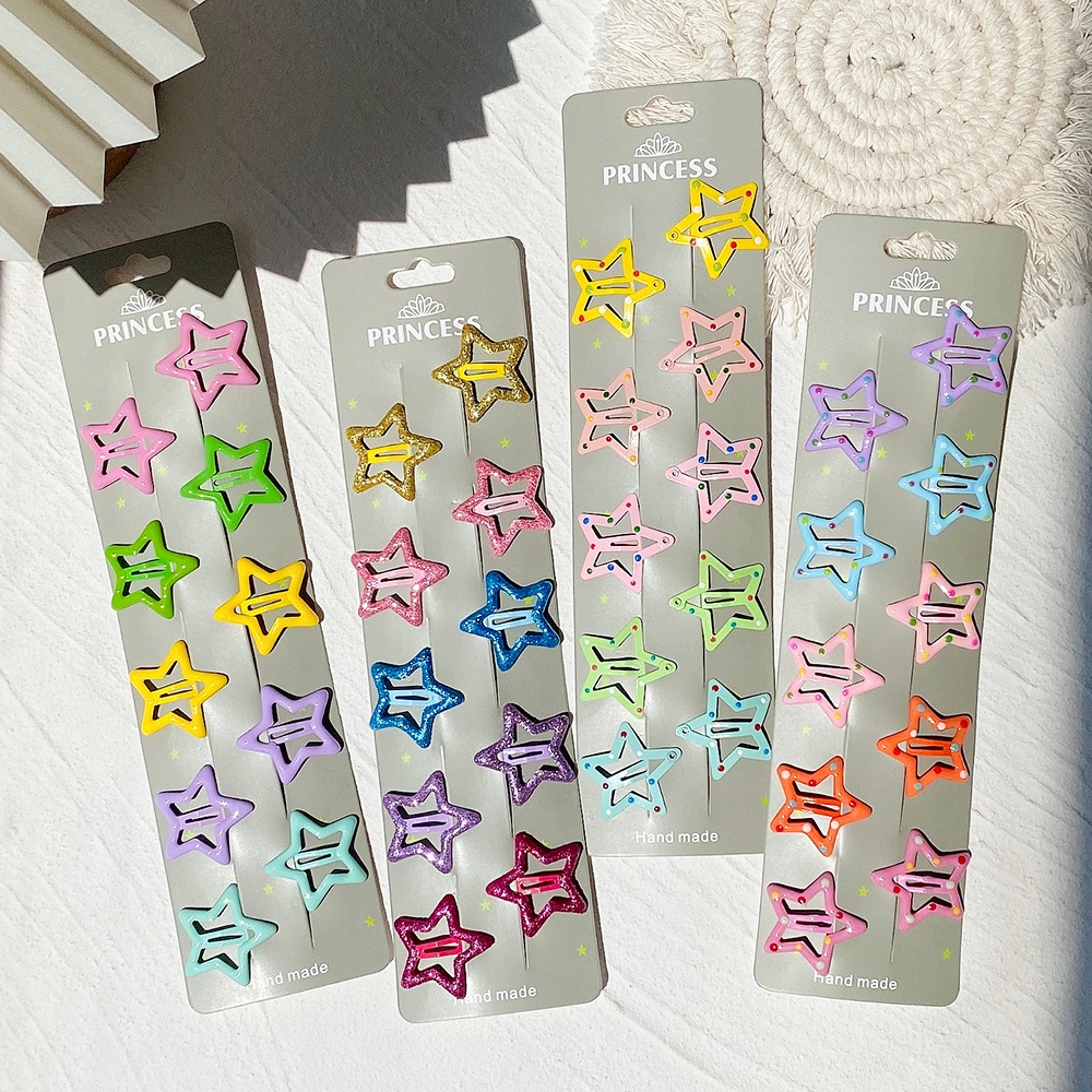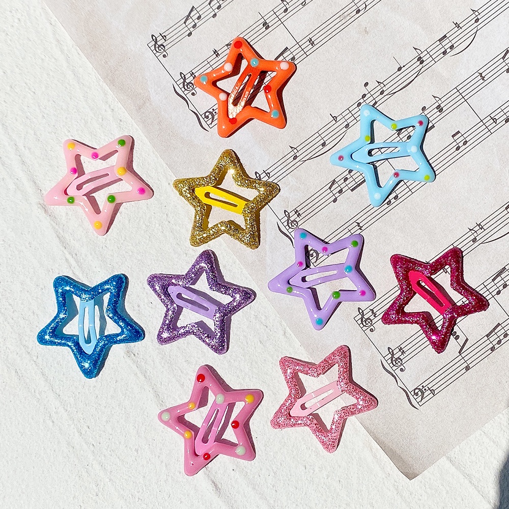 กิ๊บติดผมโลหะ รูปดาว ประดับกลิตเตอร์ สีสันสดใส เครื่องประดับผม สําหรับเด็กผู้หญิง จํานวน 10 ชิ้น ต่อชุด