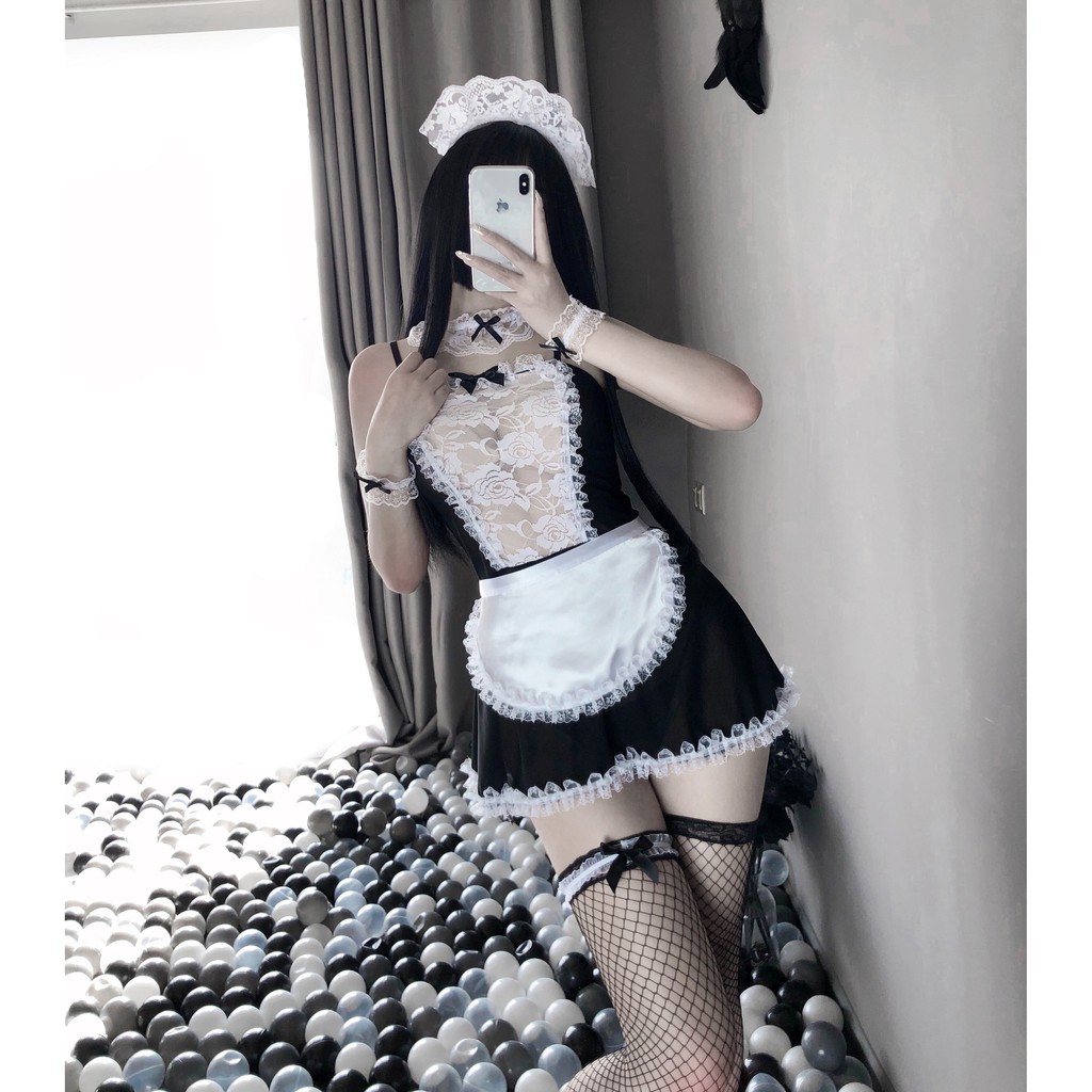 🚀ชุดคอสเพลย์👙ชุดนอนเซ็กซี่⚡ชุดแม่บ้านคอสเพลย์⚡ระบายลูกไม้ซีทรูข้างหน้า💓💓(H1251)