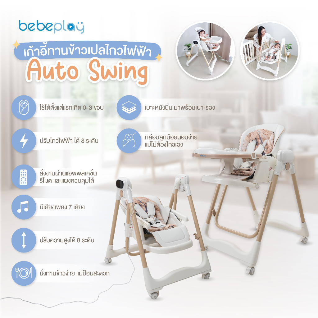 Bebeplay เก้าอี้กินข้าวเด็ก เก้าอี้เด็ก โต๊ะกินข้าวเด็ก เก้าอี้ทานข้าวเด็ก รุ่น Swing High Chair