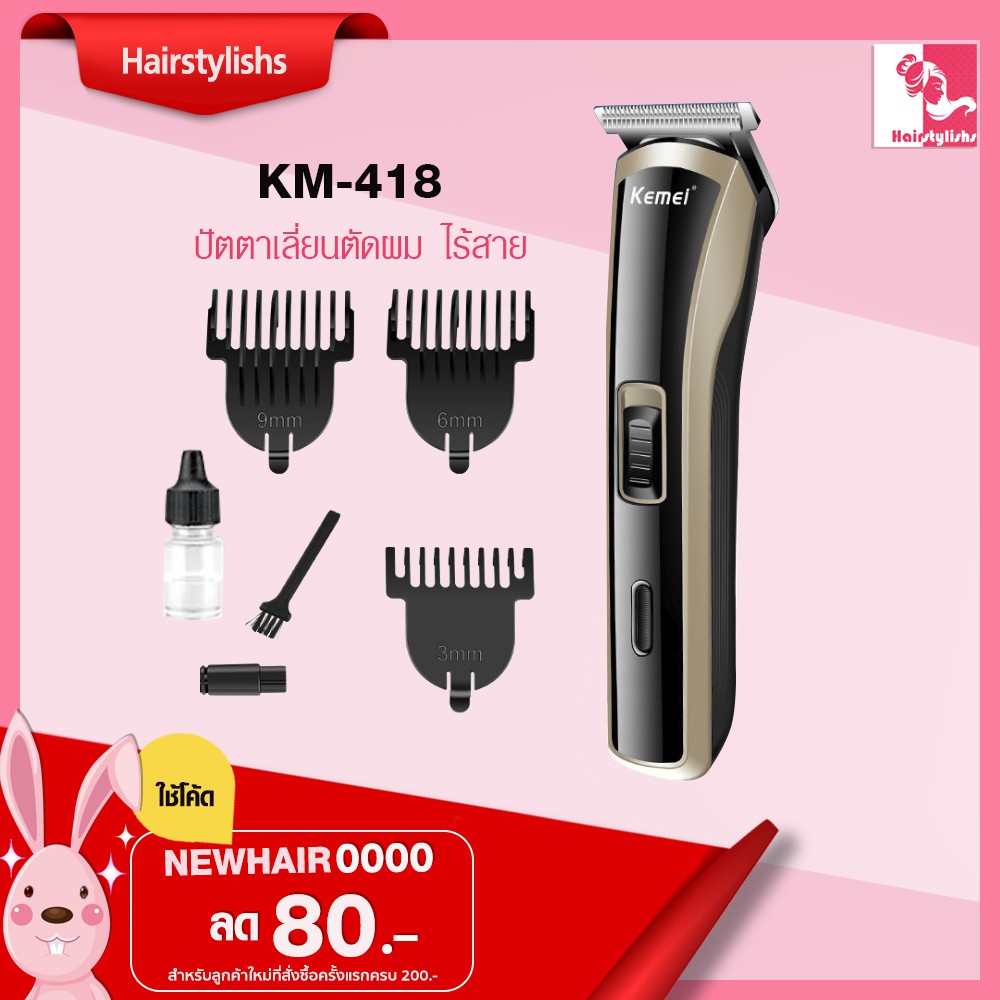 ส่งฟรี Kemei 418 KM แบตเตอเลี่ยนตัดผม ปัตตาเลี่ยนตัดผม ไร้สาย