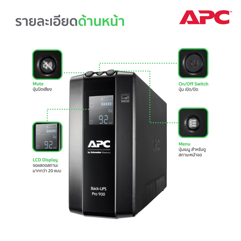 APC Back UPS Pro BR900MI (900VA/540WATT) UPS for Gaming เครื่องสำรองไฟสำหรับเกมส์มิ่ง
