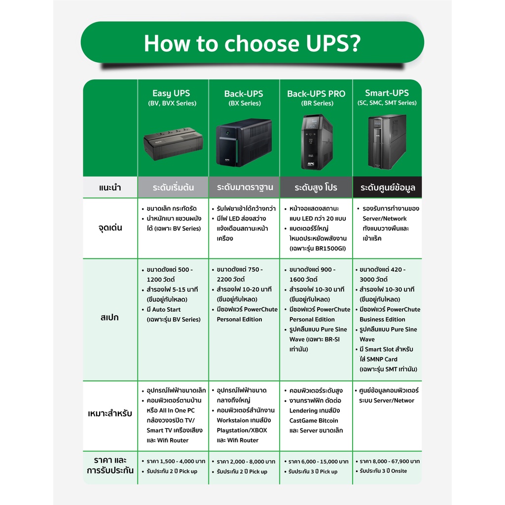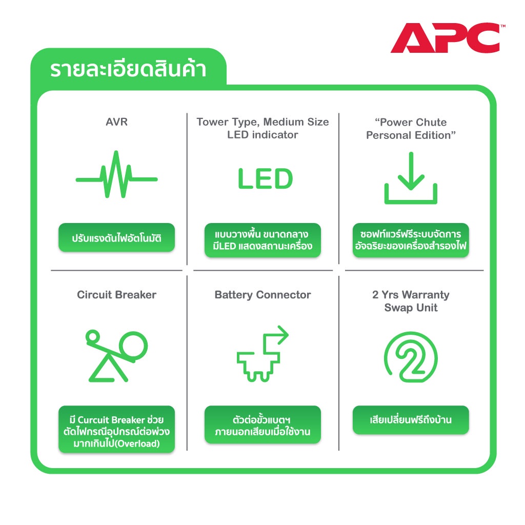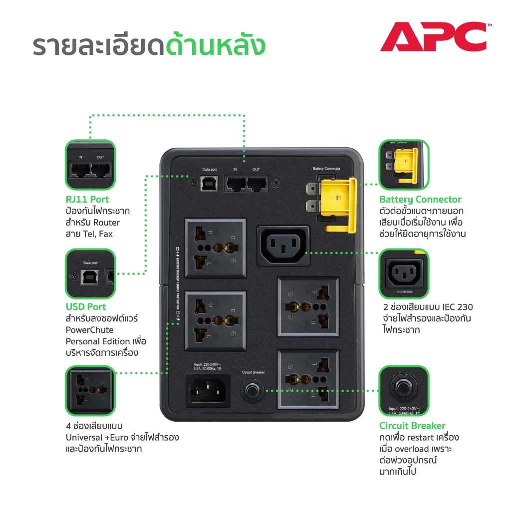 APC Back UPS BX1200MI-MS (1200VA/650WATT) มี AVR 4 Universal และ 1 IEC Outlets แถบไฟ LED