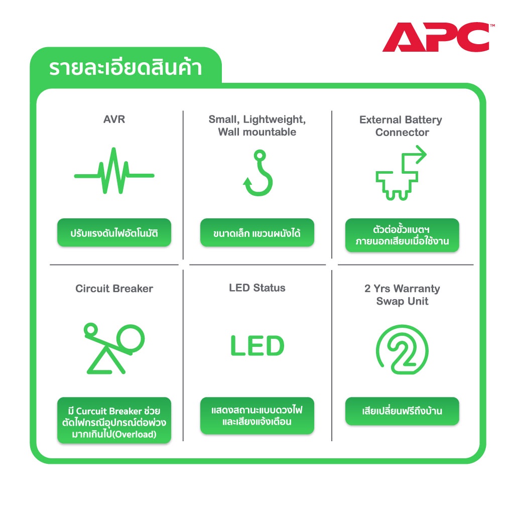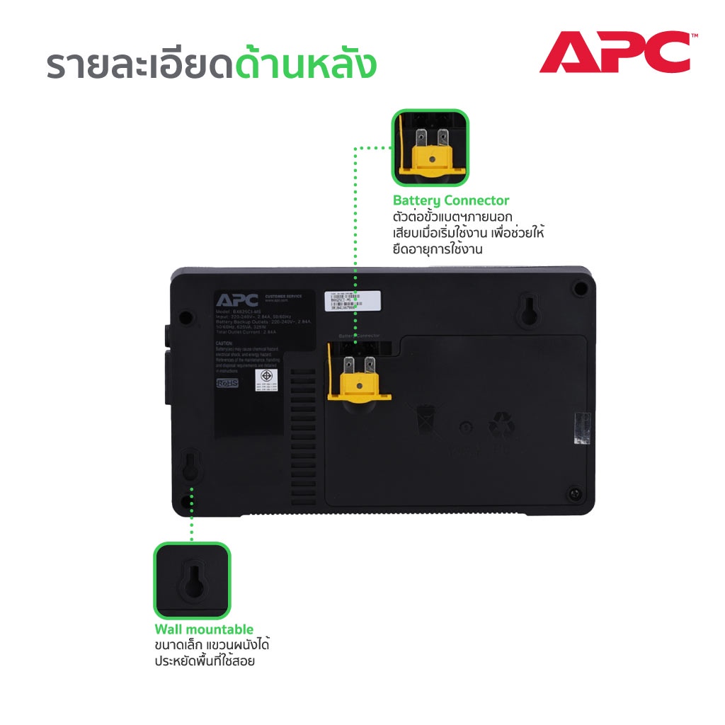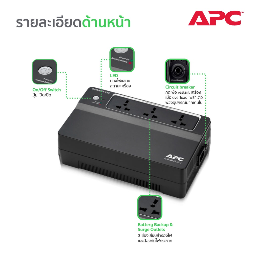 APC Back-UPS BX625CI-MS (625VA/325Watt) ระบบ Line Interactive ป้องกัน ไฟตก ไฟเกิน