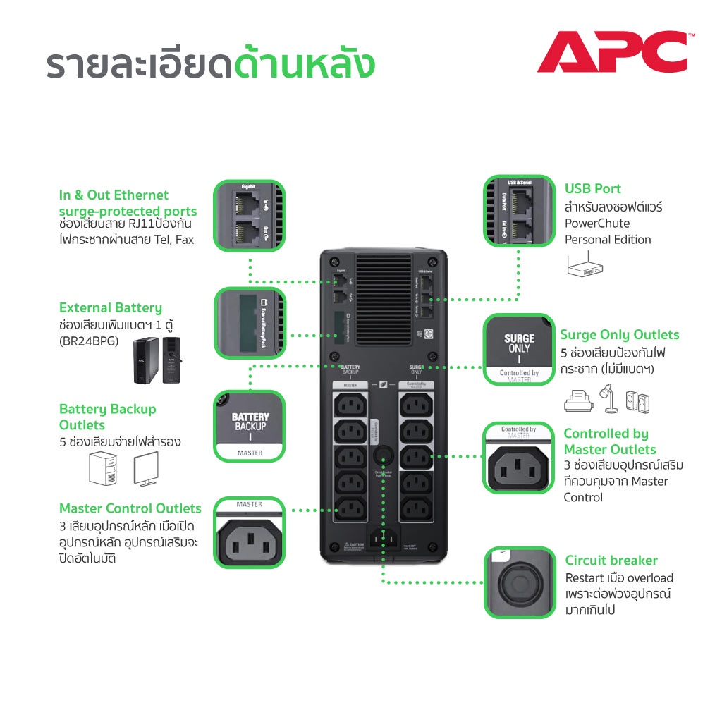 APC Back Up Pro UPS BR1500GI (1500VA/865Watt) UPS for Gaming เครื่องสำรองไฟ สำหรับเกมส์มิ่ง มีซอฟต์แวร์ PowerChute