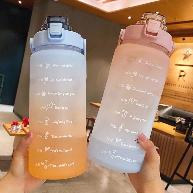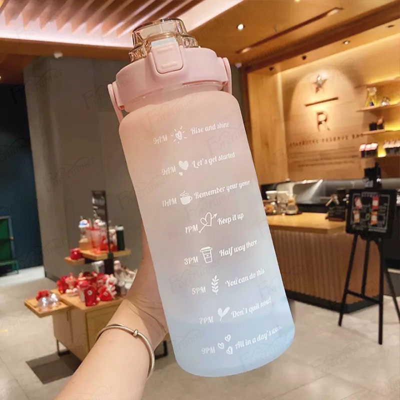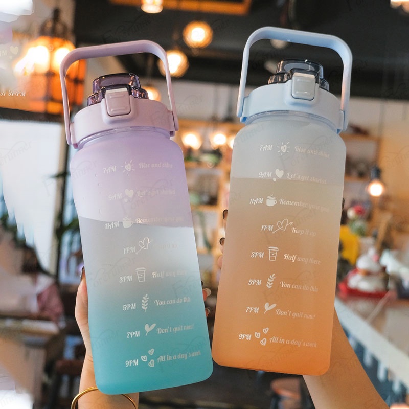 ขวดน้ำ 2 ลิตรบอกเวลา 2 ลิตร ขวดน้ำ ขวดน้ำ พร้อมหลอด มีมาตรบอกระดับน้ำ ขวดน้ำแบบพก 2000ml ของแท้ พลาสติกหน(222)