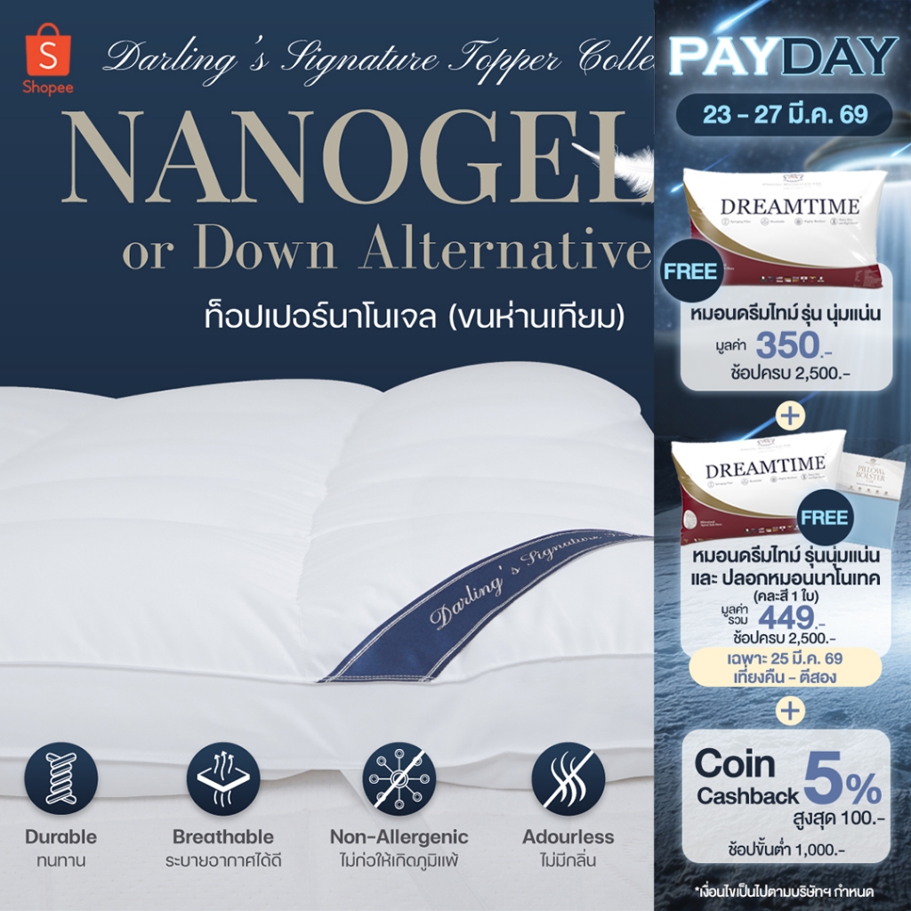 Darling Mattress ที่นอนดาร์ลิ่ง ที่รองนอนขนห่านเทียมหรือนาโนเจลรุ่นนุ่มฟู