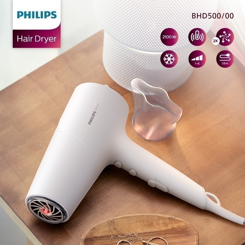 Philips ฟิลิปส์ ไดร์เป่าผม 2100W แรงลม 6 ระดับ ผมนุ่มเงางามด้วยพลังไอออนิค x2 รุ่น BHD500/00