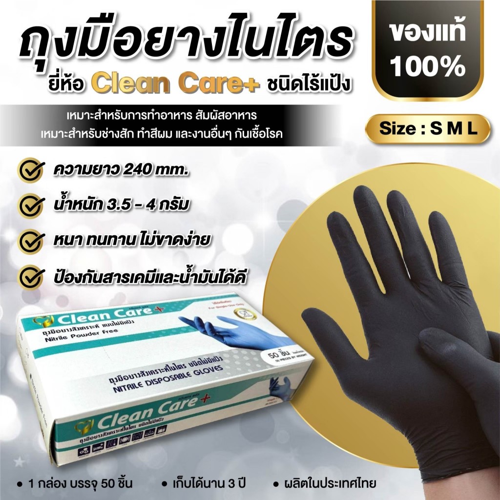 [สินค้าขายดี]โปรแรง ลด15% ถุงมือไนไตร Clean Care+ใช้ในอาหาร สินค้าดี ราคาถูก (บรรจุ 50ชิ้น/กล่อง)